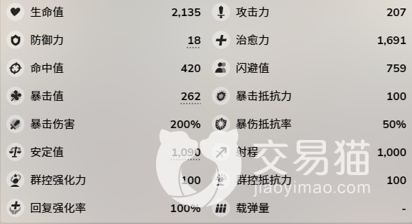 首先通过沙耶私服的属性面板来对她进行一些基本了解。攻击力为2027,命中值为420,暴击值则是262,安定值比较少只有1090点,这样的面板在同属性的角色中只能排在中间的水平,由于攻击力白值较低,所以对角色的练度要求比起其他角色会高上一些。
