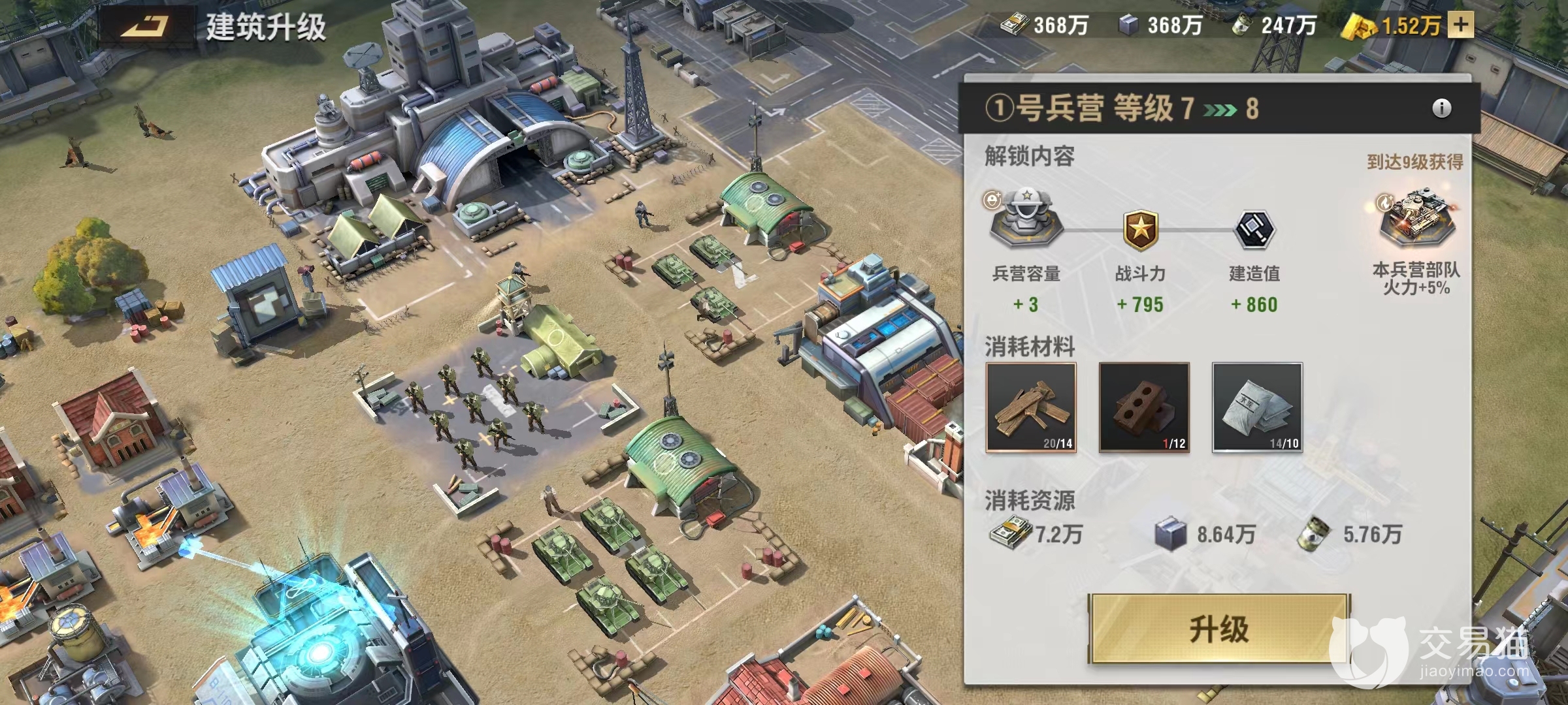 而兵营则是和兵力相关,兵营越多所能解锁部队编制也就越多,进行升级之后还能提升兵营容量,间接将战斗力也同步提升。还有本兵营部队火力加成等,这些都是和战斗相关最为紧密的。在部队编制方面,一定要优先将军官分配妥当,步兵军官就去统帅步兵,坦克军官就去统帅坦克,接下来再用通用弥补。此时不要考虑到过多搭配,因为目前阶段还不能展现出优势,只要能大方向确定就完全够用。
