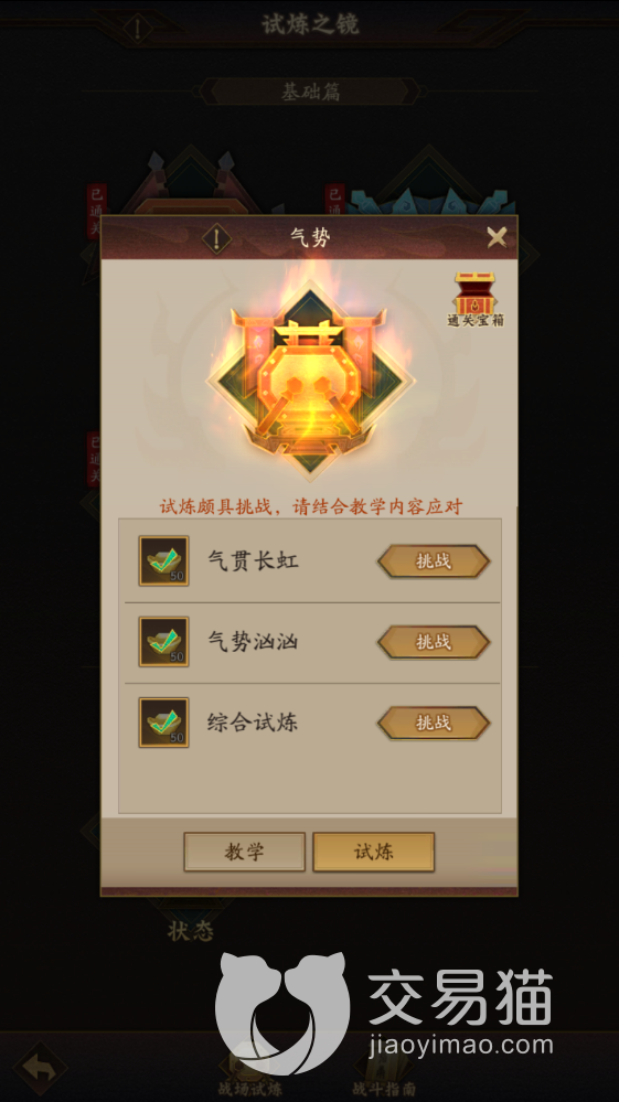 首先这个关卡的位置是在混沌界中的异想奇境里,点击之后就会出现试炼之境,在气势关卡中的试炼中,第二个关卡就是气势汹汹,难度可以说是整个试炼之境中最难的一个,有很多小伙伴们试验了无数次都没能成功通关。