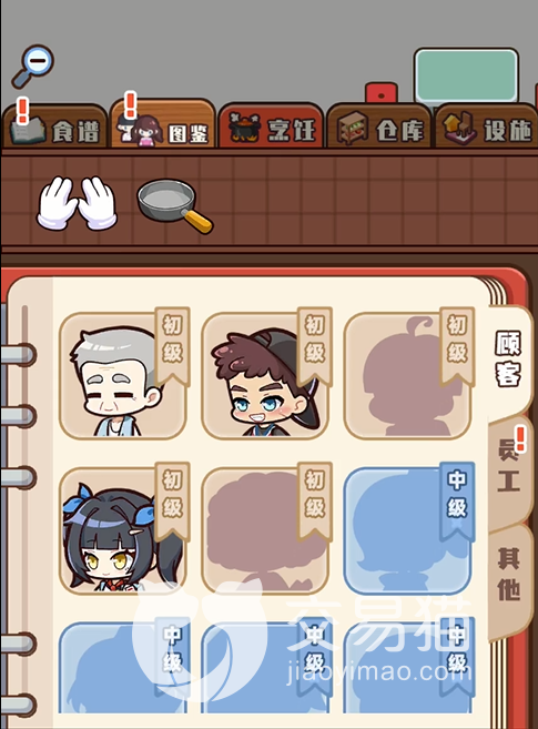 游戏内不同外形和类型的顾客在进入店内会给予不同的奖励,带着安全帽和蓝色头发的女明星在进入店内后会给玩家小伙伴们带来大量的金钱,外卖小哥进入店内就代表有外派单子,带着黑眼罩的小贼进入店内一定要及时驱赶以免造成损失。