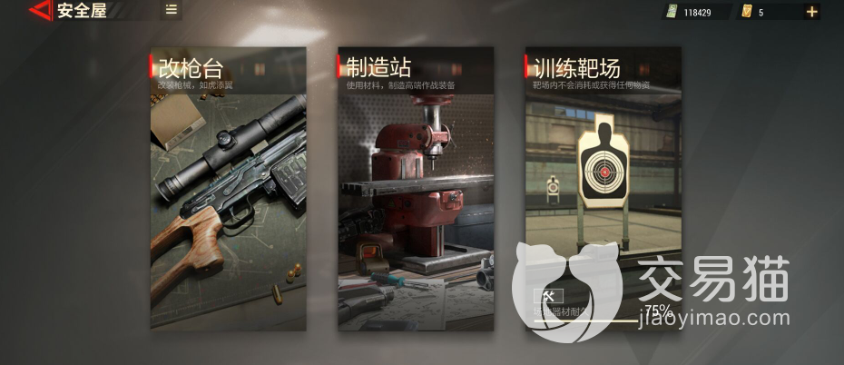 安全屋在游戏主界面上是独立的一个玩法模块,玩家点击进入之后,就可以发现三个不同的系统,分别是改枪台、制造站以及训练靶场。这三个系统在这里就给大家详细的介绍一下它们各自的作用是什么。