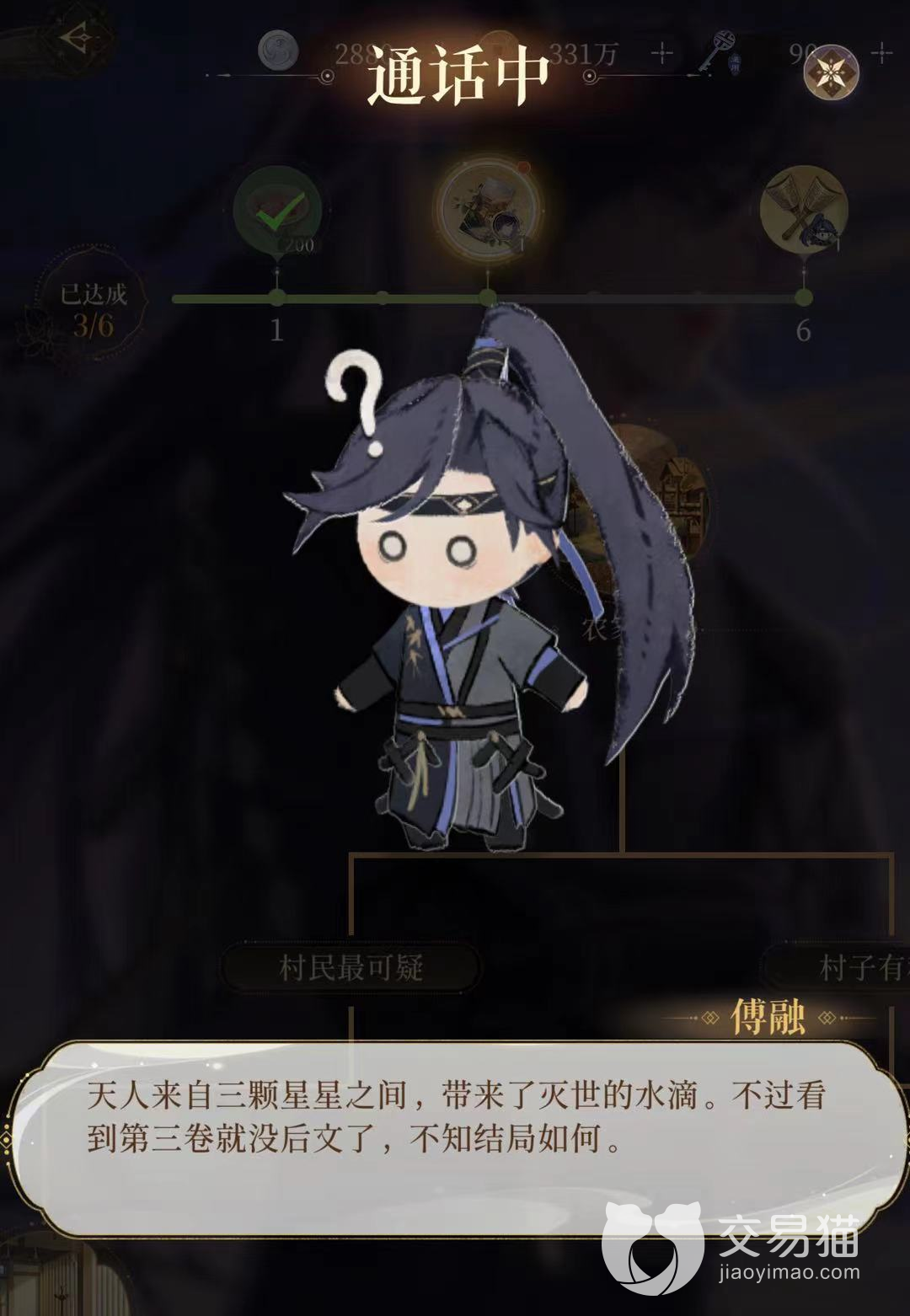 同时其他密探角色也有透露傅融真实身份的情节,比如贾诩称傅融是趁你病要你命的鬼、山九说傅融像是司马家二公子司马懿,以及华佗指出傅融的账本有问题,直称傅融是司马家的走狗。