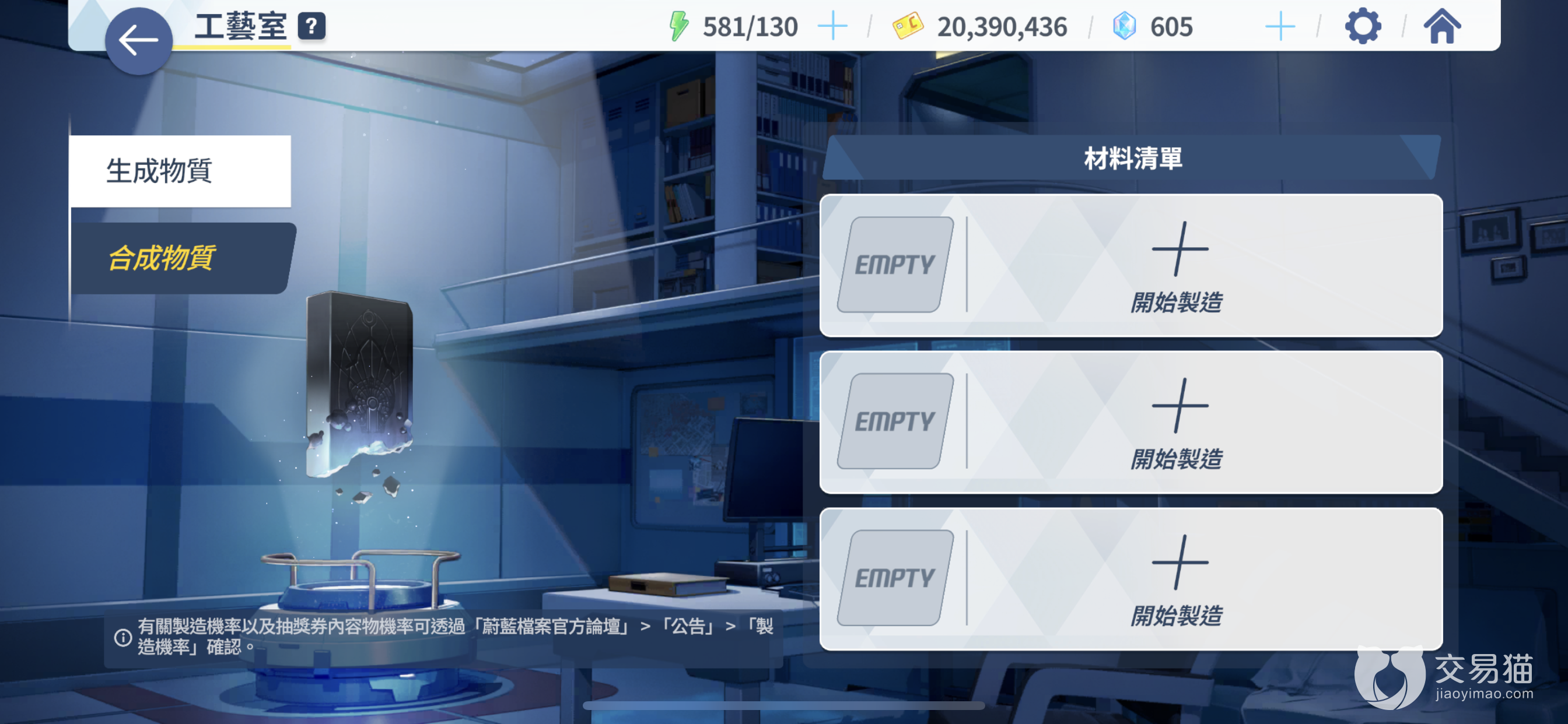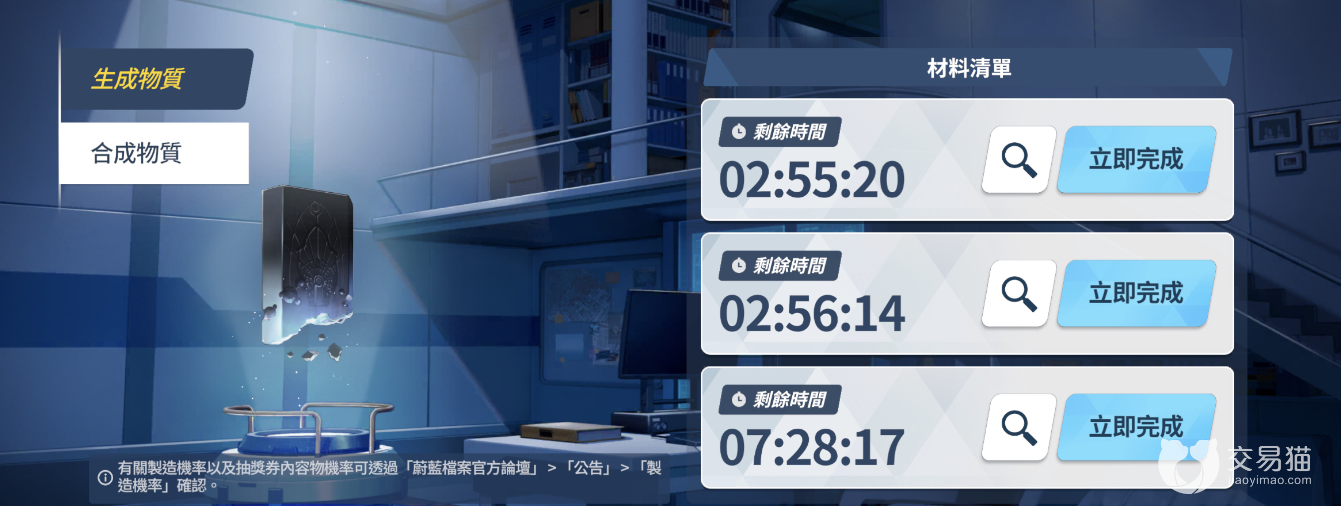 首先玩家们进入主页右下角的制造页面后,最先看到的内容是左侧可供选择的制造方式,分为生成物质与合成物质。顾名思义,玩家们选择生成物质后,在制造页面的右侧点选加入按键,即可开始制造。而点选合成后,则需要消耗玩家们自己已有的材料,例如欧帕兹、各个学院的笔记或是送学生的礼物。这两种制造的成本相比起来,生成物质制造明显属于低投入高回报,所以是更划算的一种制造方式。