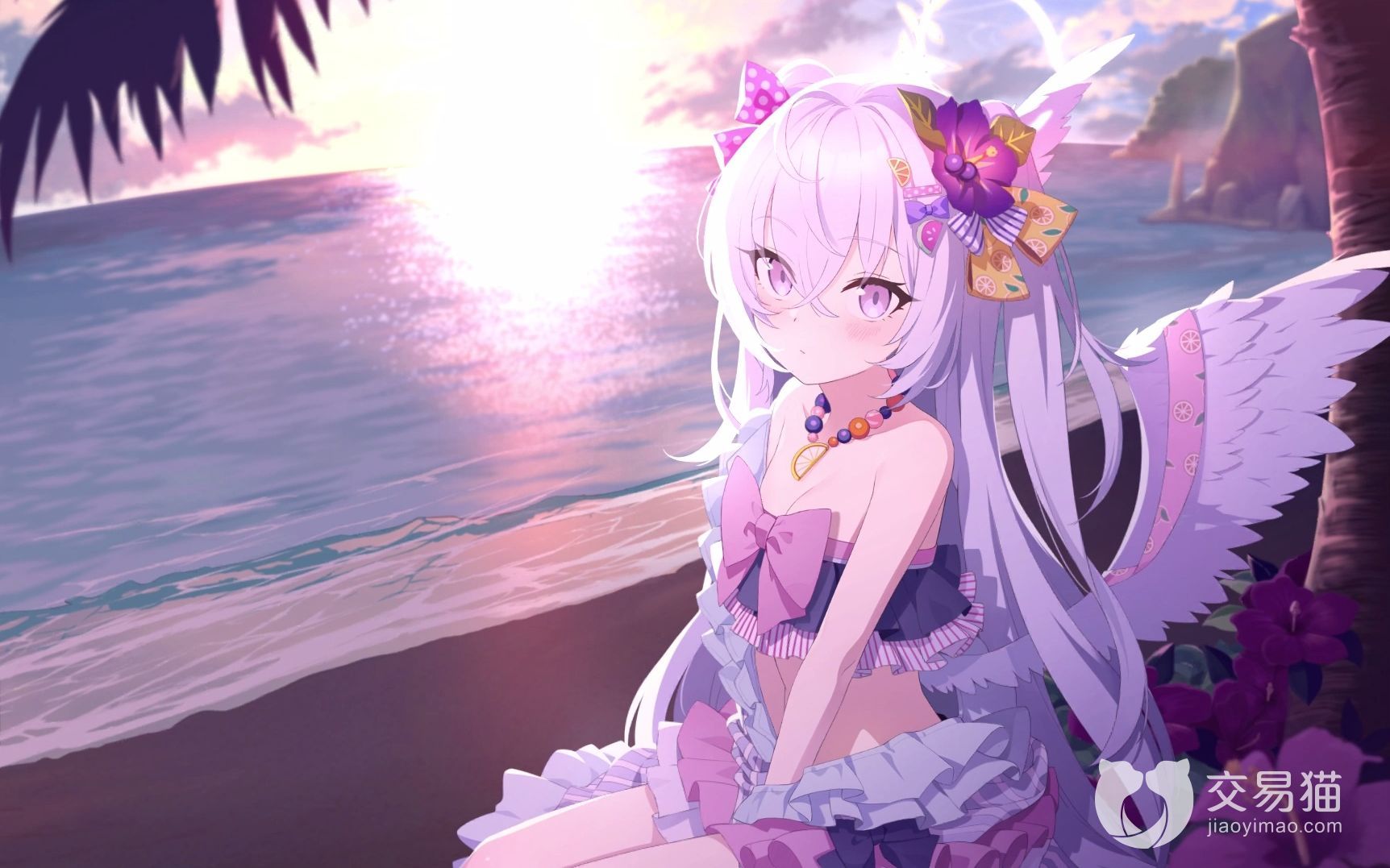 身穿粉紫色泳装的梓在夕阳的照耀下看起来格外的温柔,在剧情中梓会告诉小伙伴们,她是第一次感受到这种一眼望尽的视觉感受和体验,非常喜欢这种在海边沐浴夕阳的感觉,尤其是夕阳照射在海面上,显的整片海都波光粼粼的,觉得很神奇很美好,认为自己能够来到海边真是太幸福了。