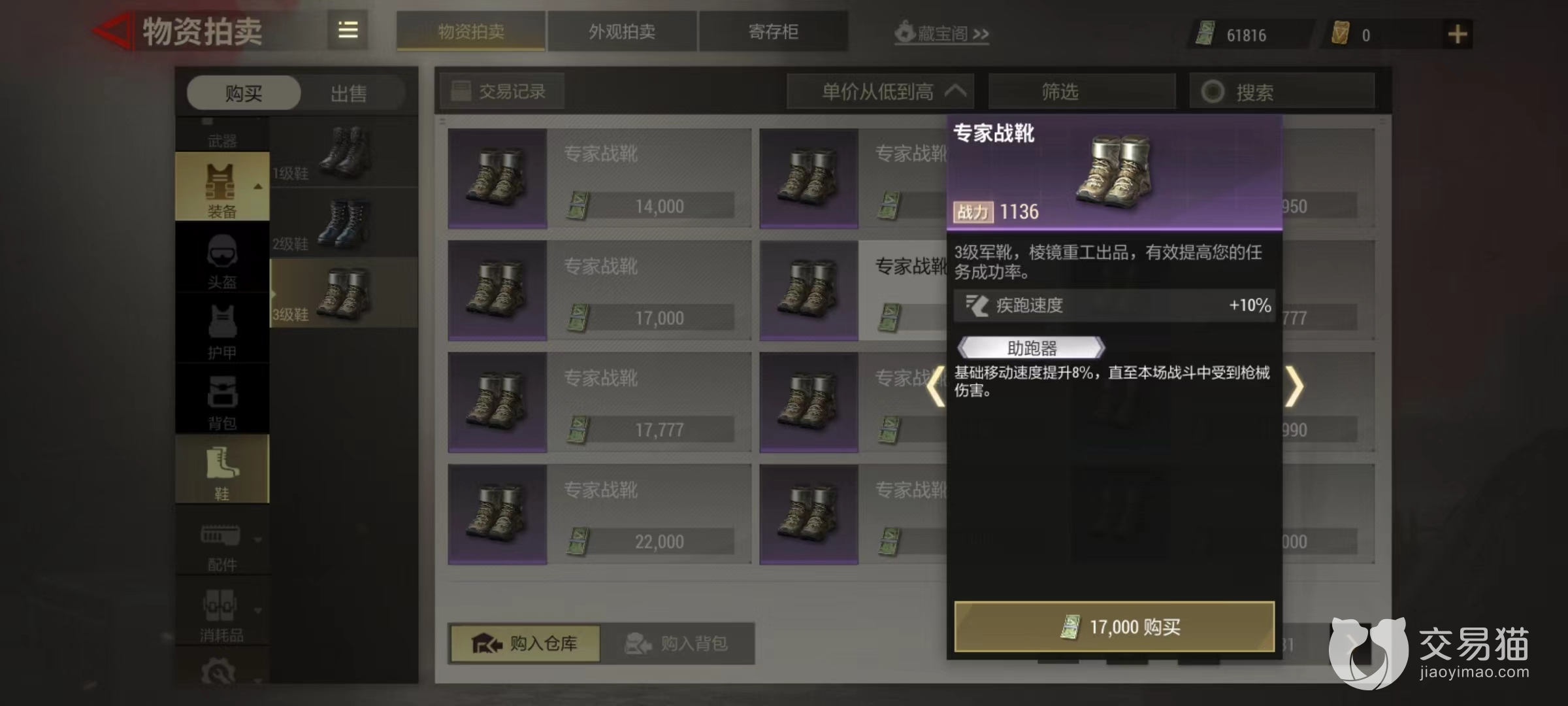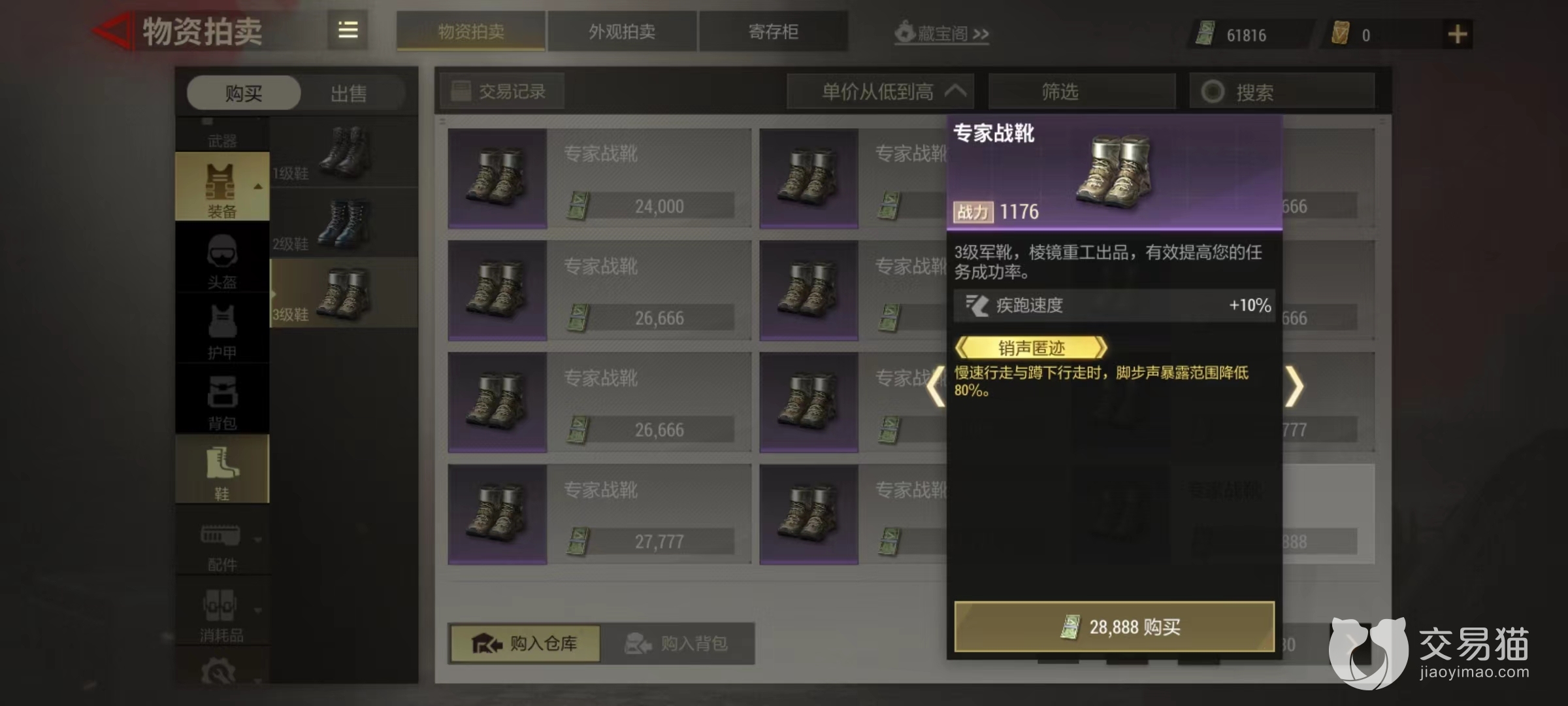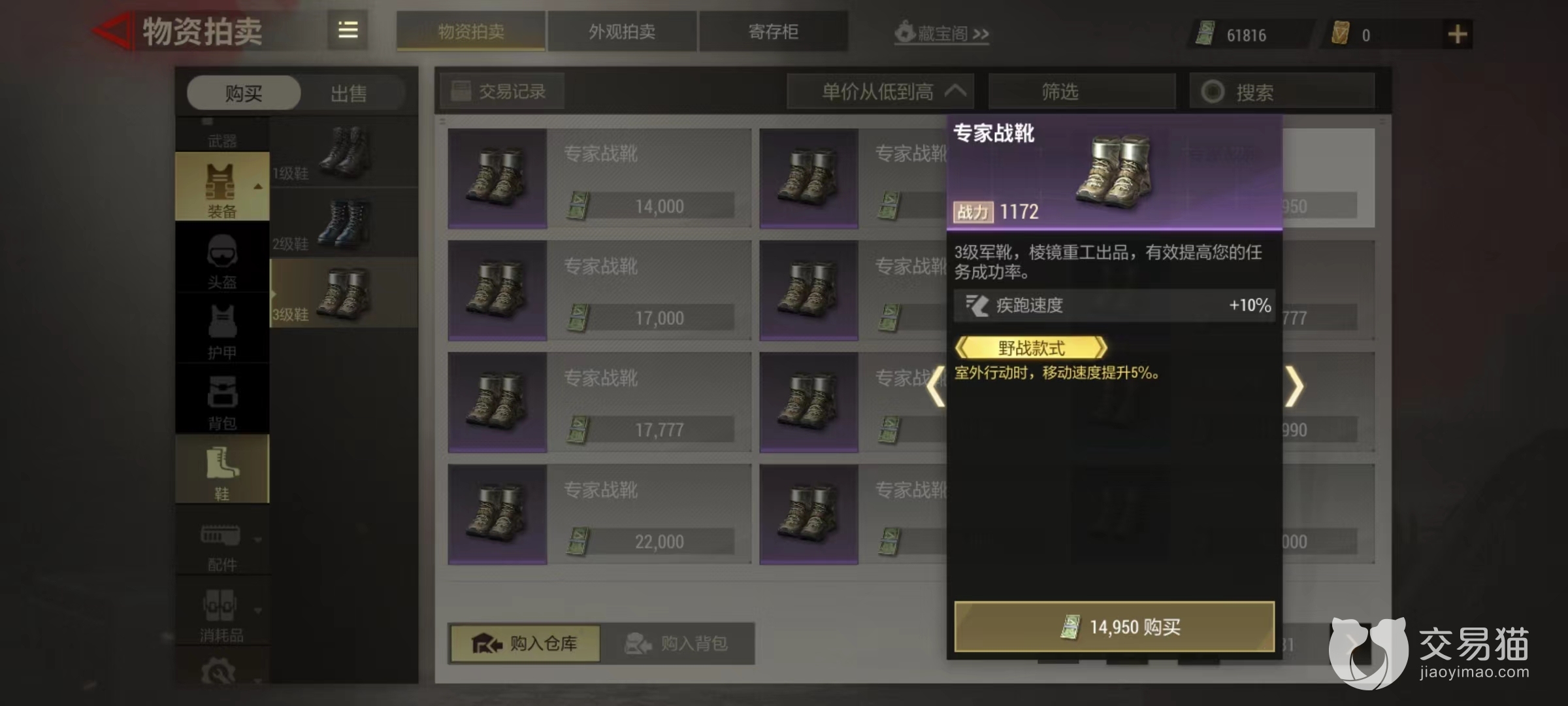 目前最好的靴子当属专家战靴不仅基础属性高能够获得更多的扩展属性,对于这些属性小编认为可以分为两大类,第1类就是提高移动速度,也是靴子最关键的属性,有潜行款式、助跑器、远行款式,登山款式和野战款式等。这些技能的效果除了可以提高奔跑状态下移动速度时,在下蹲或趴下等状态时同样能够提高移动速度。