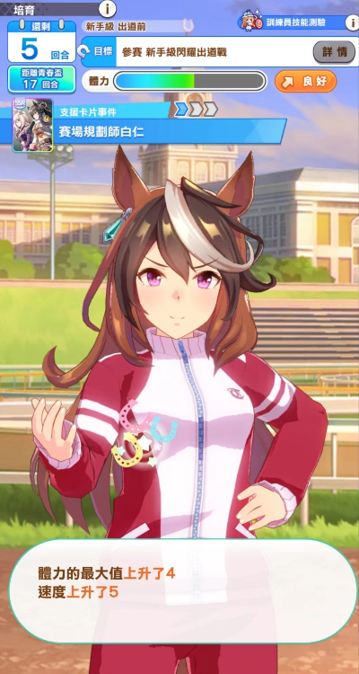 虽然意志力训练、速度训练、耐力训练、力量训练等会降低体力,但智力训练并不会使体力下降,而且能小幅度的回升。部分小伙伴会发现,在体力不足的时候训练智力失败率比较高,但不用太担心,即便智力训练失败,也不会出现负面状态或者降低干劲,只是会损失掉一回合。