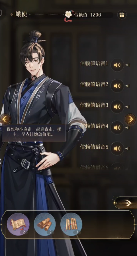 通过这个物品每次都可以增加二十点信赖,达到一定信赖值后就可以解锁新的语音,这些语音都是十分符合角色立绘的声线,能让你体会到各种情形下蛾使的情绪和个性表现。这些语音本身触发的场景也有不同,大家通过赠送预支单到一定程度后,按照下图中的这些情况就可以依次触发了。