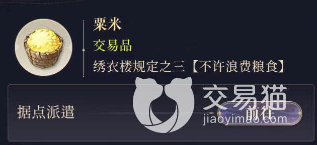 使用粟米购买道具的地点有琅琊、丹阳、雒阳、寿春等行商。每个行商的商店都在据点的第一选项的行脚商人那里开启,另外要注意的是处于火烧状态的据点是无法进行交易的哦!