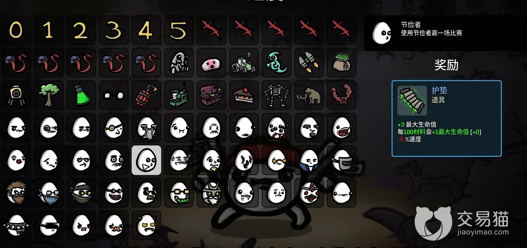 其实护垫的解锁条件非常简单,玩家只要使用节俭者进行一场战斗并取得最终的胜利,便能够解锁护垫这一道具了。护垫作为节俭者的专属道具,可以给节俭者带额外的生命加成,当节俭者每次积攒材料80就能增加1点的最大生命值,这与节俭者的特性是非常契合的。护垫让节俭者拥有了更高的容错率,所以小编建议大家最好去解锁这一道具。