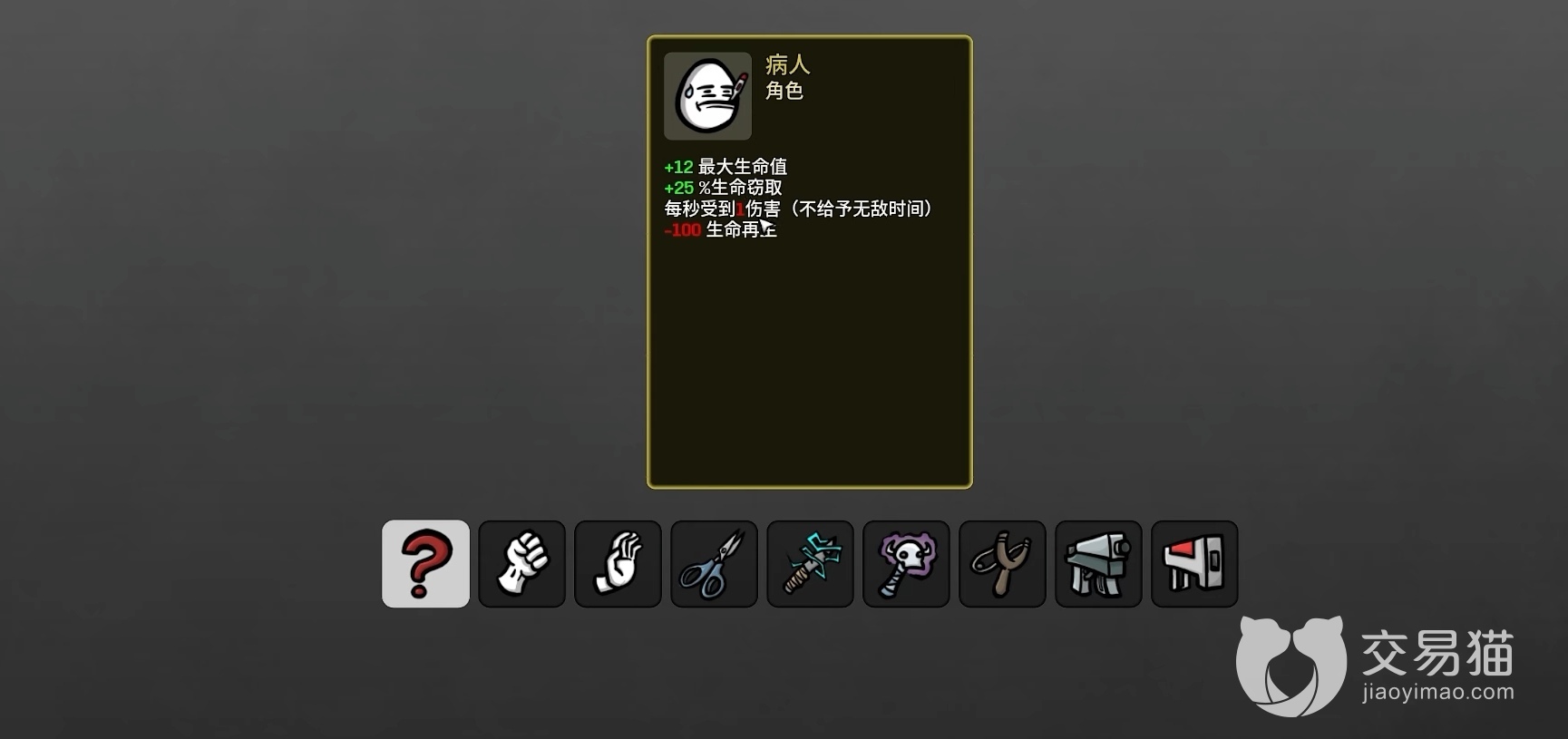 3.医生,医生比较擅长近战输出,强度很高,它的技能有吸血和提高攻速的效果,适合它的武器是剪刀,能够让它凭借极高的出击频率给敌方造成持续性的高额伤害,有几率能够直接秒杀敌方怪物,小伙伴们在使用这一角色进行作战时,只要考虑给它多拿范围伤害、攻速、生命偷取的属性就行。