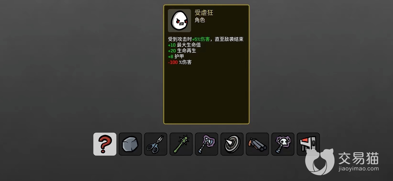 12.受虐狂,小编推荐给受虐狂多拿收获和幸运,这样让它有足够经济实力去购高品质道具与武器,当然生存也是很重要的属性,同样要多拿,它本身的战斗力也是不错的,培养的好,可以很轻松地通关。