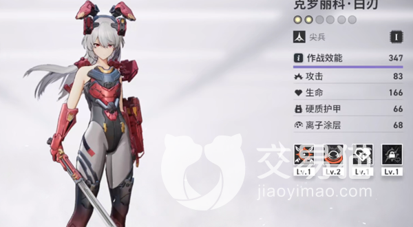 克罗丽科白刃使用的武器是太刀,这是一个以近战攻击为主的角色,但也有一定的远程攻击手段。其带有239点的初始作战效能,攻击力和物防为43点,魔防44点,生命值109点。这个角色的行动力也比较可观,6个600点的行动力让她能够快速接近敌人给予沉重打击。从属性方面来看白刃还算中规中矩,作为二星角色的数据其实比较可以了。各方面也比较均衡,因为是近战角色,攻击力比较高一些,能够在场面上起到突击的作用。