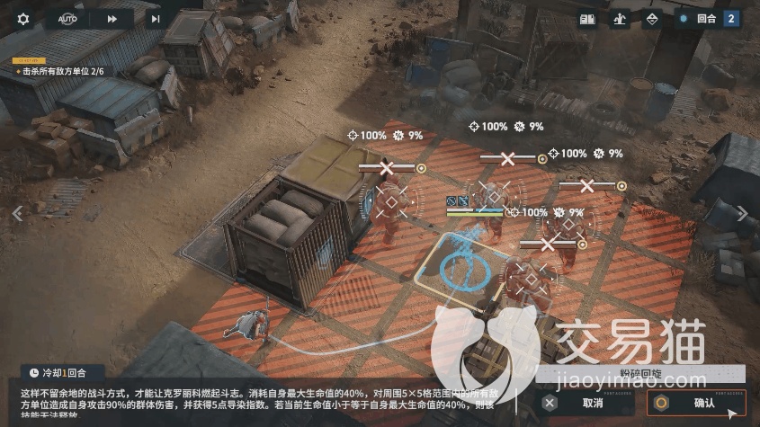 大招技能粉碎回旋会消耗其40%的最大生命值对角色附近5x5范围内的所有敌人造成75%的伤害。值得注意的是,这个技能会固定消耗一定的生命值,如果当前角色状态不足,就没有有办法释放。作为克罗丽科白刃主要的群攻技能,粉碎回旋虽然可以达到快速清场的作用,但是对生命值和状态的要求有点太高了。不过LV3取消了生命值下限的限制,虽然依然会消耗大量的生命值,但这样的话还算是比较实用的技能,毕竟群攻和伤害摆在那里,能够带动供给节奏,怎么都比较划算。