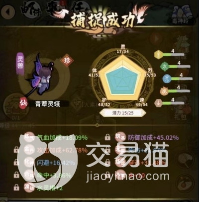青蕈灵蛾是毒神岭特有的灵宠,走的是速度流辅助路线,在大部分场合都比较好用,就是合体后除了敏捷外的属性加成比较少,若是玩家能捉到好的符灵,可以考虑将它替换掉。