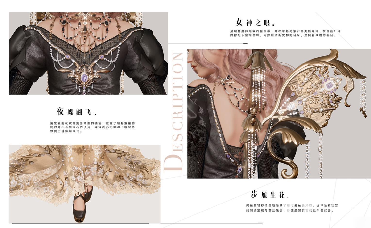 这件衣服是六星性感属性的服装。在小编看来,在大自然中,蝴蝶可以算是“绝世美人”了。如同一朵盛开的鲜花,蝶翼上绚烂的花纹,以及蝴蝶的生命短暂,共同造就了其“脆弱美”。在希腊神话中,蝴蝶被认为是一种涅盘,涅盘的象征。在艺术创造方面,也有不少以蝴蝶为题材的作品。这件衣服的灵感来自于一只蝴蝶。在这个设计中,服装的设计师加入了很多蝴蝶的元素。非常豪华的花边,刺绣和宝石。简洁的裁剪、柔软的线条、精致的蝴蝶图案,为整个造型增添了几分浪漫与复古的气息。在他的身后,是一对金色的蝴蝶翅膀,上面有着繁复的纹路。