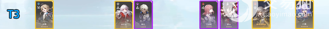T3:彦卿,克拉拉,阿兰,艾丝妲,停云,火主,白露。