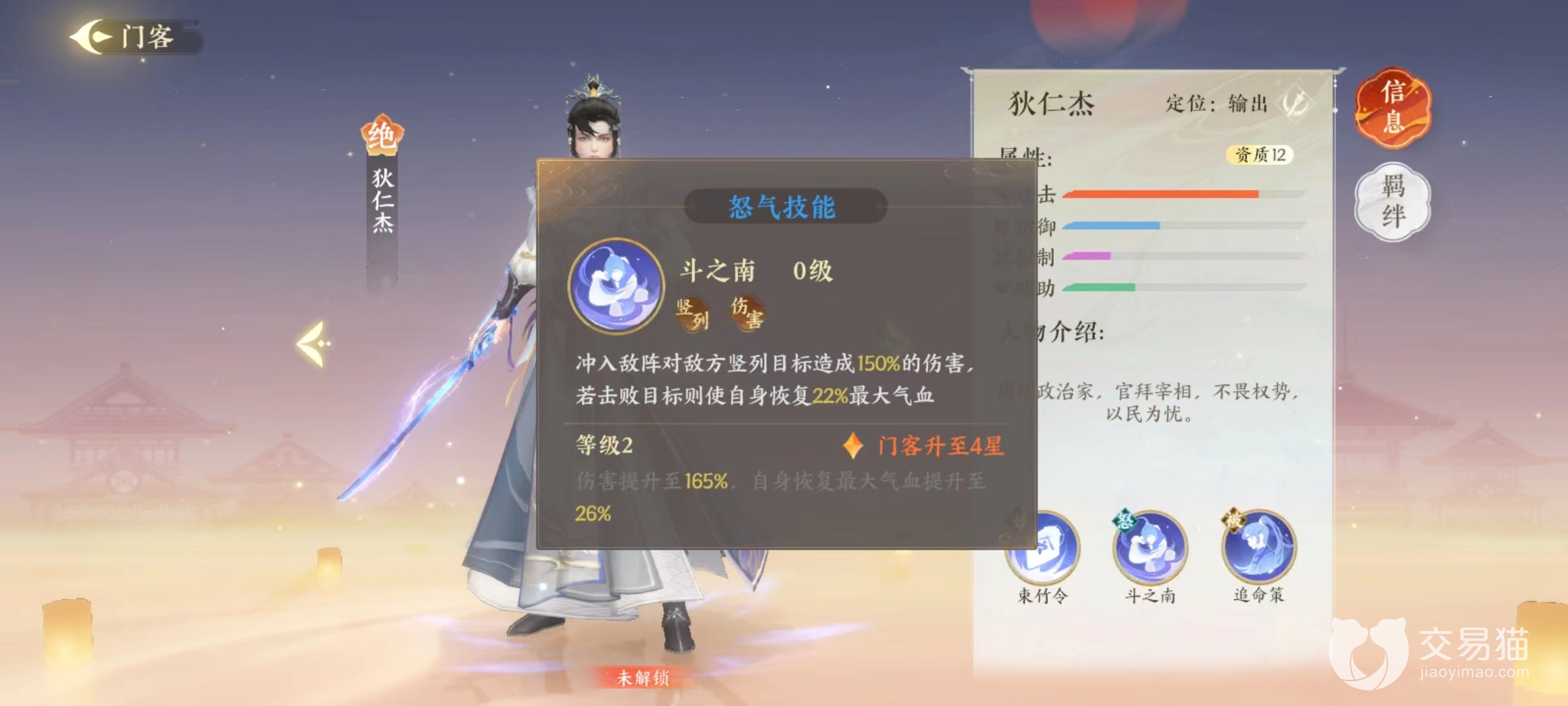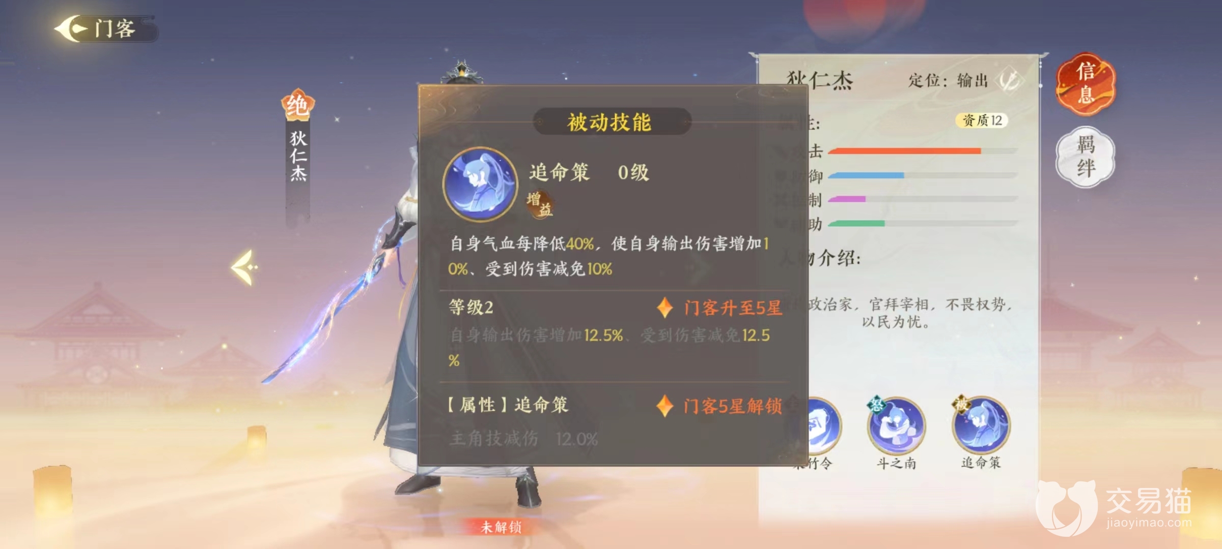大家现在认为扶摇一梦狄仁杰技能好用吗,虽然只有12点资质,但是这并不影响其成为很多玩家阵容中的主力输出。尤其是在低血量时提高伤害的特点,更是成为后期翻盘关键,即使只有狄仁杰自己存活,也能拥有获胜希望。