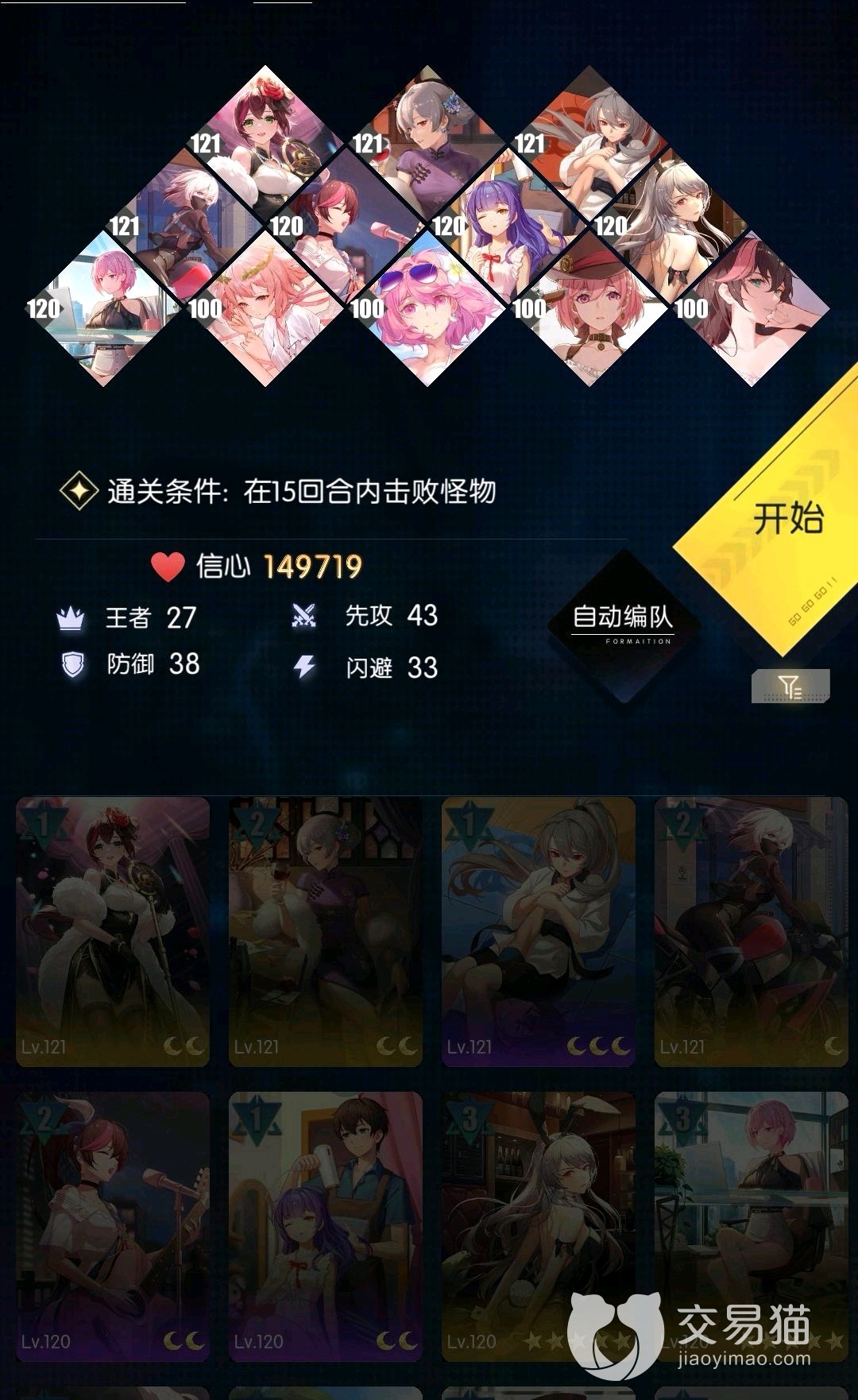 通过这一关卡的卡牌,小编推荐带上121摩托+121纠缠+周一的清凉,这三张是是核心卡组,有了它们的存在,即使玩家的信心值只有200000也可以轻松过通关,至少80%的关卡都能够用这一套卡组来应战,还能跨信心战斗,非常厉害。