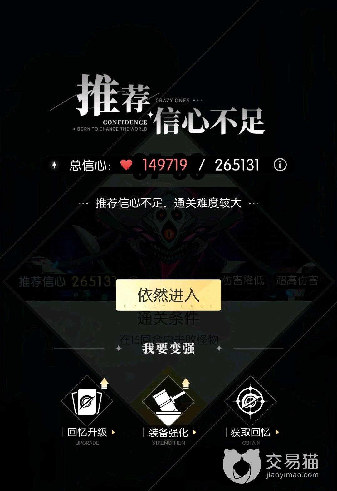 第七章的每一个关卡中,玩家都必须在十五个回合内击败怪物,不过好在这些怪物的难度不算非常高,最后一个boss的攻击力是最高的,打败它需要265131的信心才行,所以小伙伴们要记得多去提升男主的信心,不然到了后期会越来越吃力的。