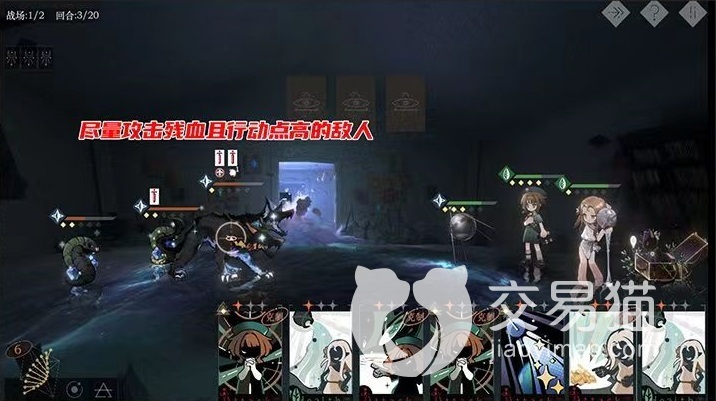 小怪战斗时要时刻紧盯对方出手顺序,如果感觉可以直接秒掉敌人,那就选择还没有出手的目标,让其丧失出手能力。此时如果带有群体伤害非常高的角色,就抓紧利用群体技能压低血线,然后不断寻找残血小怪依次点杀。这时还有一项目的就是快速凑出高阶牌,应对第二战场里的boss战斗。集中所有火力快速将身上护盾打破,在破盾之后利用眩晕时间快速将之前积攒高阶牌打出,这样能够打掉很多血量,最后要珍惜控制次数,一定不要超过4次。