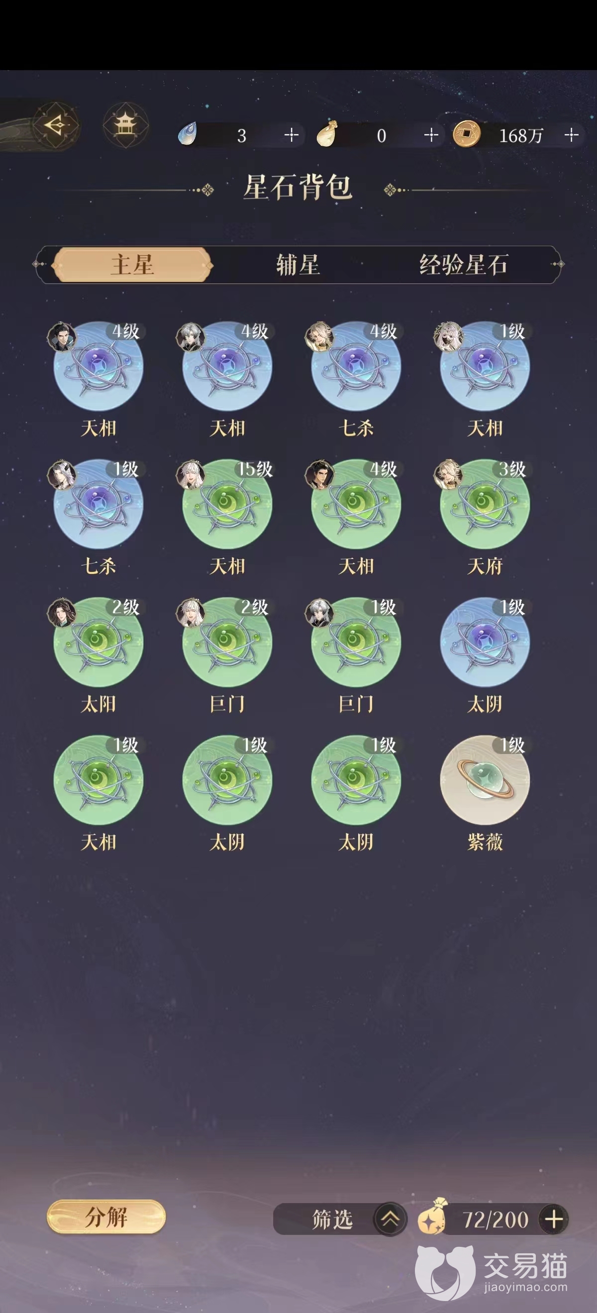 玩家在游戏中每轮观星的次数为三十次,也就是抽取到这一数量的星石便要进行一次收取,而星石的档位分为了白品,蓝品,绿品,橙品这四个档位,其中橙品星石的稀有度也是最高的,每次抽取需要花费一万五铢钱。如果玩家有月卡的话也可以点击观星页面右下角的一键观星,一键观星和手动观星的爆率没有任何区别,相对来说一键观星更方便一点。