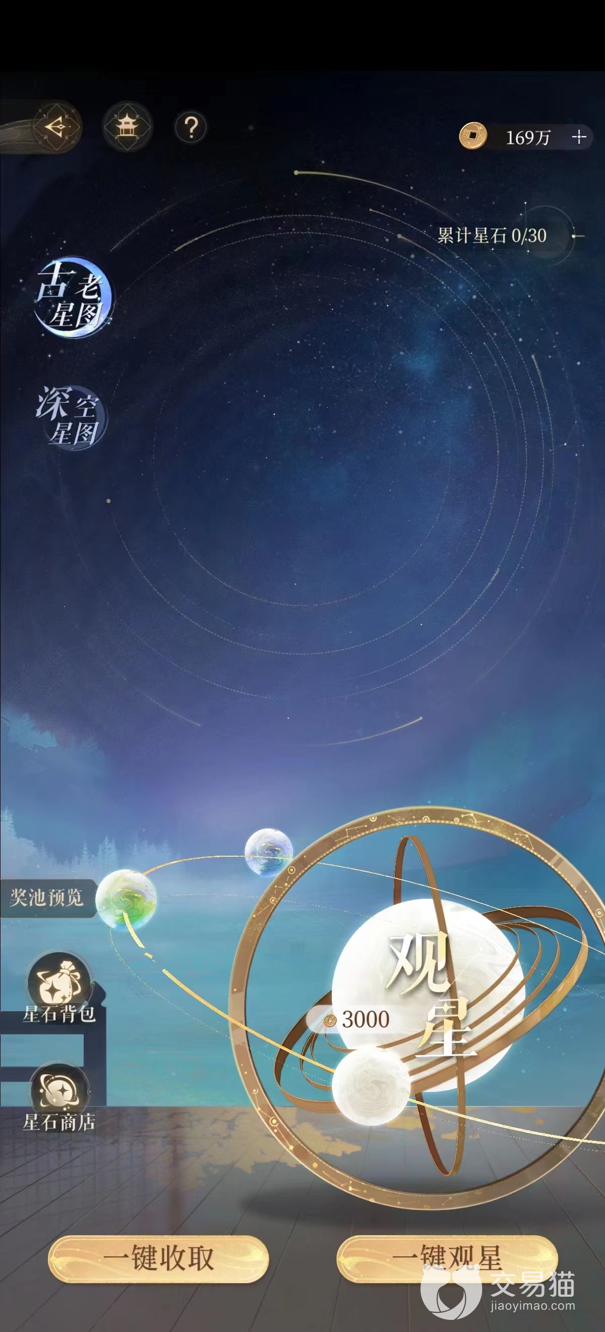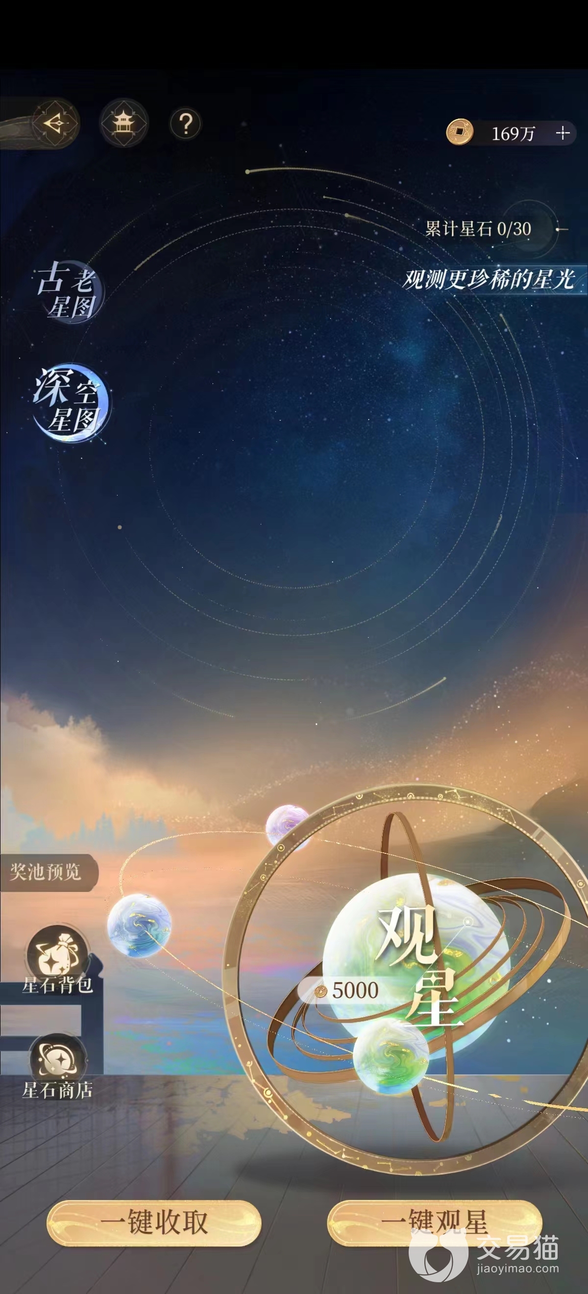 由于【古老星图】的高品质星石爆率很低,小编建议大家在三十级前尽量不要进行观星,并且在玩家到达三十级前往往星石带来的加成也很小,因此当玩家的等级到达三十级后可以直接进行【深空星图】内星石的抽取。