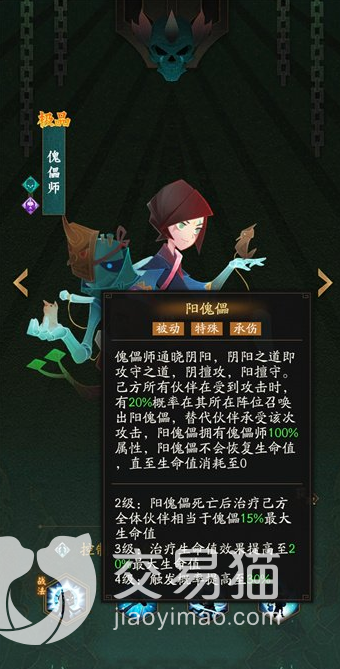 以上就是神仙道3傀儡师强度如何的全部内容,玩家可以把傀儡师作为辅助使用,也可以作为提升队伍输出,和增加生存效果使用。傀儡师可以让玩家快速提升自身战斗力,帮助玩家提升角色强度。作为鬼族角色之一,玩家对傀儡师都比较感兴趣,可以在游戏当中去试用一下,让角色本身变得更强!