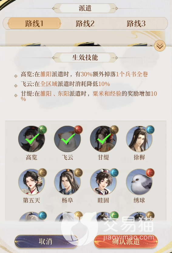 ③培养密探:通过派遣任务可以获得一些兵书全卷,这个道具可以用以给角色提供经验值,经验条满了之后就能够升级,升级带来的大额属性增幅能帮助你切实提升角色的战力,后续的闯关也会变得更加顺利。