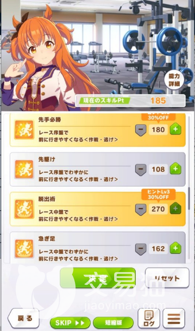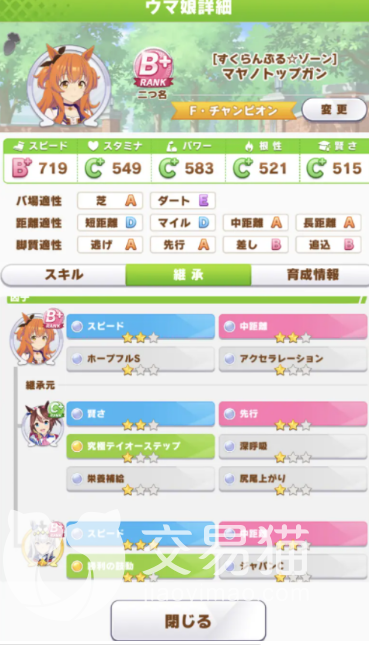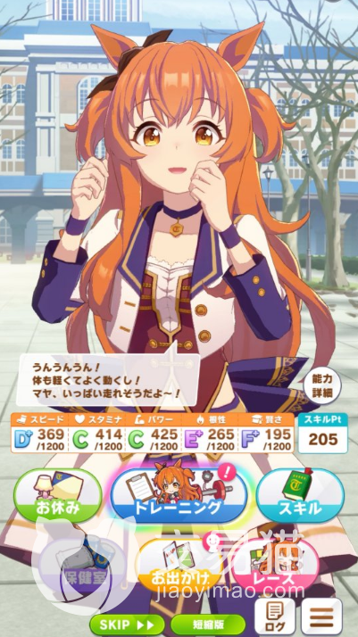 这位赛马娘的深呼吸为一技能,这一技能在消耗体力时,可以起到加持体力的效果。体力值可以进一步提升,让人真正把技能发挥出来。目前此技能只能在直线赛道上面赛跑,对场地有一部分限制。二技能是哈亚特语,可以让角色在比赛当中把速度提升到极限,这个技能可以在赛季中期使用。或者是在弯道使用,这样就有可能会超越别人。三技能为一阵风,这也是加速技能,但是对比赛场地有一些要求,可以在直线赛道上面比赛,但弯道没办法使用,效果不好。