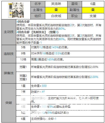 在主动技能上,初始状态下,连续释放雷系光灵连锁技能2次,技能在第二次的时候会有衰减,只有80%了。觉醒后除了拥有初始技能之外还会额外触发雷系光灵连锁技能所需格子数量1格。
