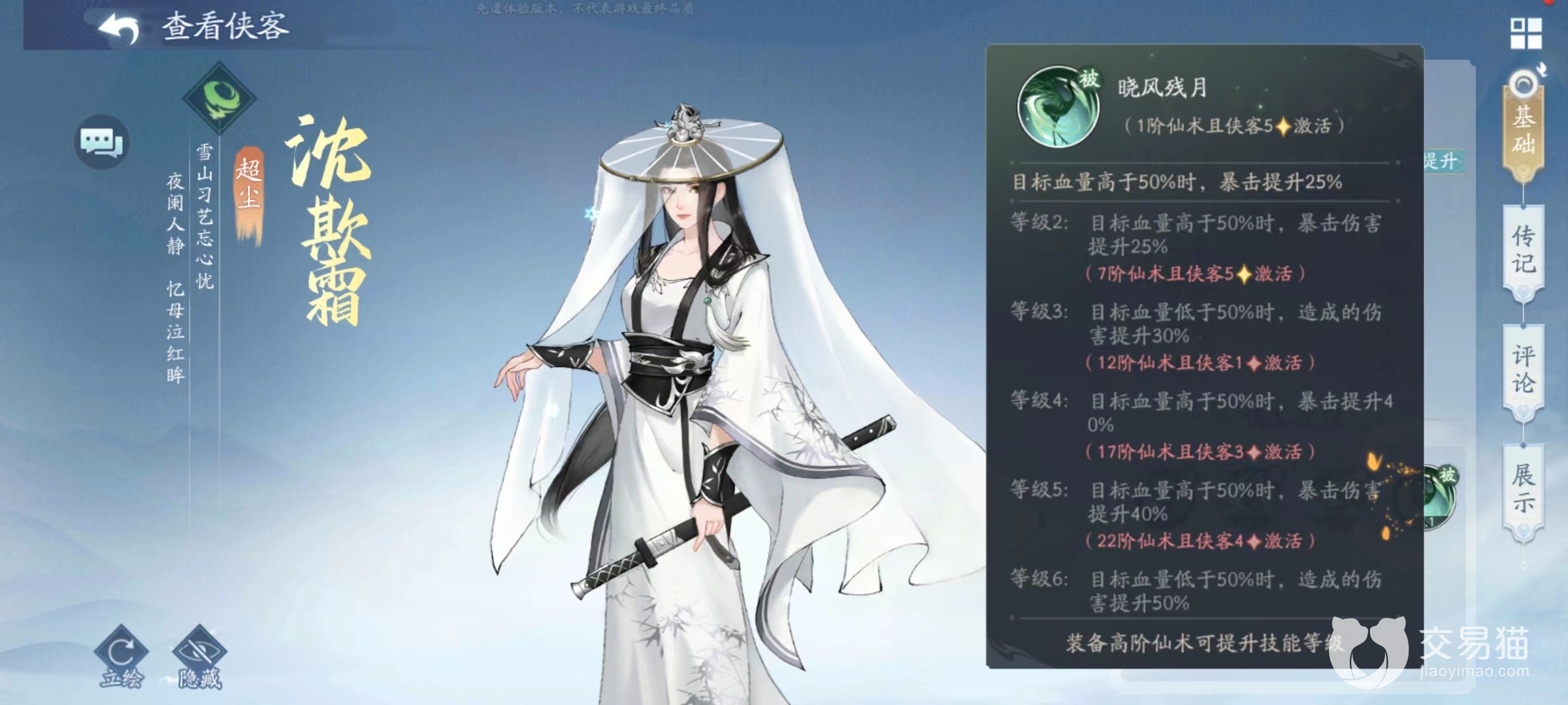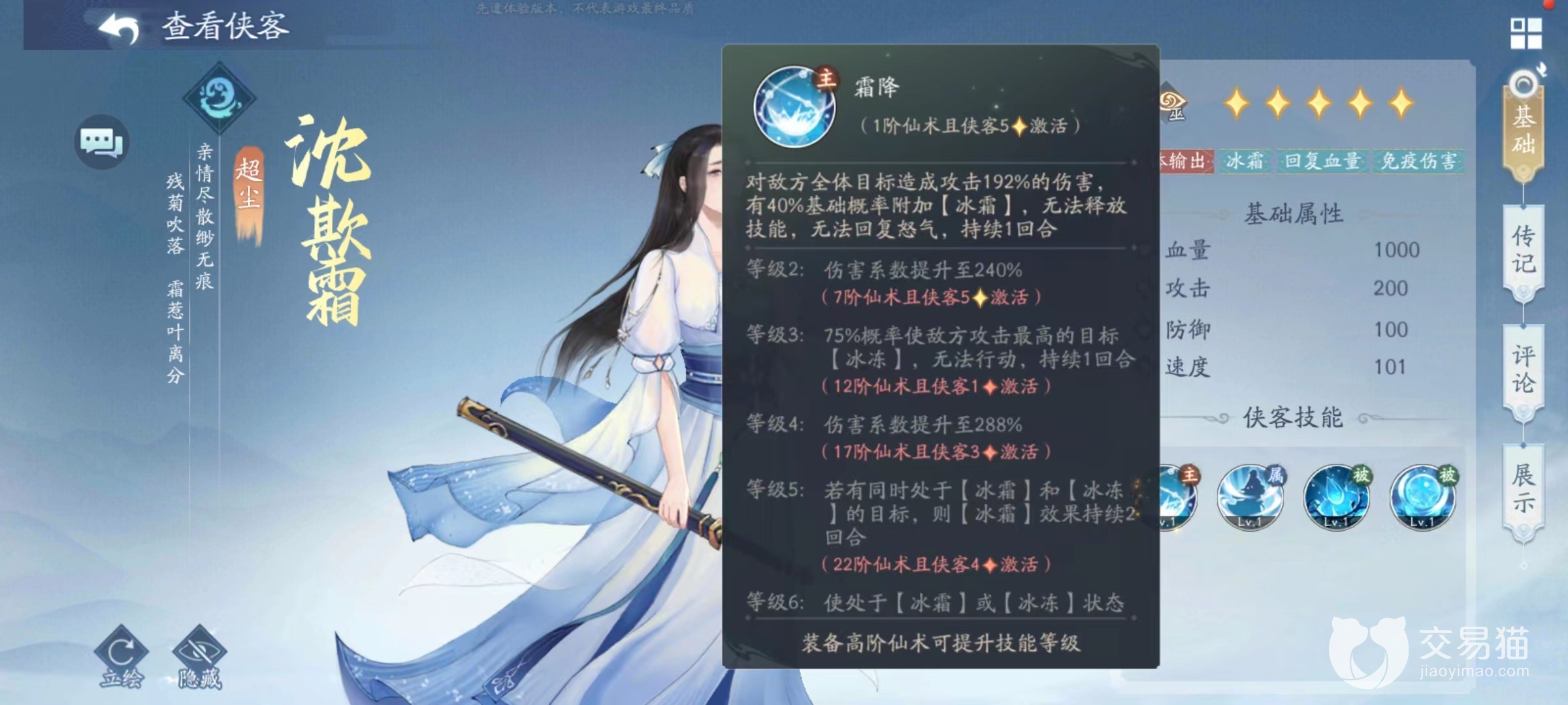 游戏中同一人物在不同时期拥有不一样形象,这也是为了迎合原著中剧情而设计,反映在手游中就是有不同属性表现形式。对沈欺霜来说,有风、水和火这三种属性,但是火属性目前并没有推出详细资料,所以重点介绍前两种。风属性主打单体爆发,除了能直接伤害到对方后排目标之外,在最后一次攻击时有几率附加沉默,被沉默影响后本回合无法使用技能,相当于将对方怒攻技能封禁住,影响非常关键。