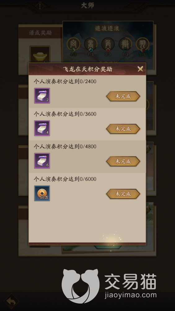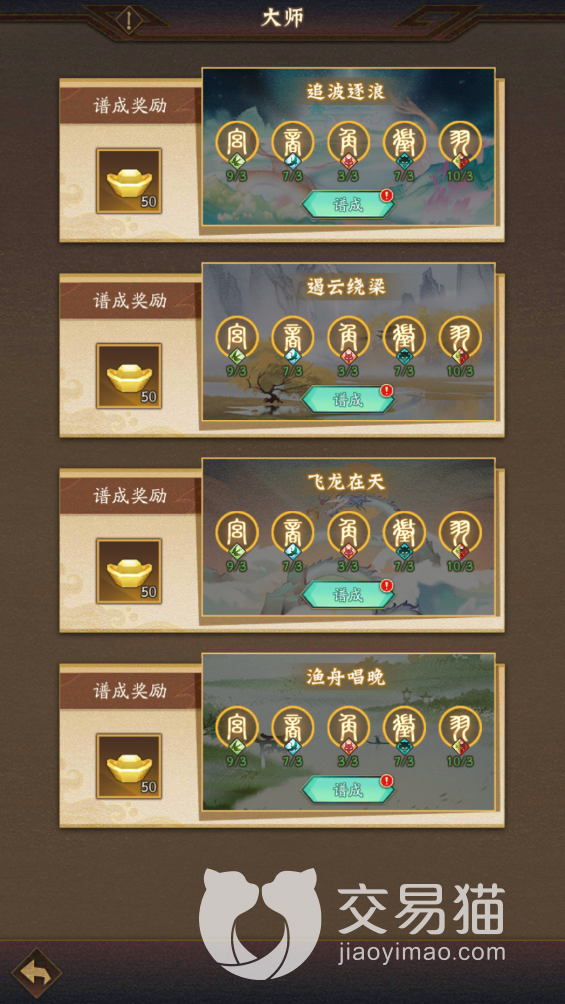 收集完之后点击谱成就能够进行演奏,演奏达到一定的分数就可以领取到不同数量的乐论和铜币,乐论可以在乐府回馈中兑换很多稀有的奖励,比如五星的红色装备和神魔人物,亦或者是一些紫色人物和资源等,都是非常不错的培养资源。