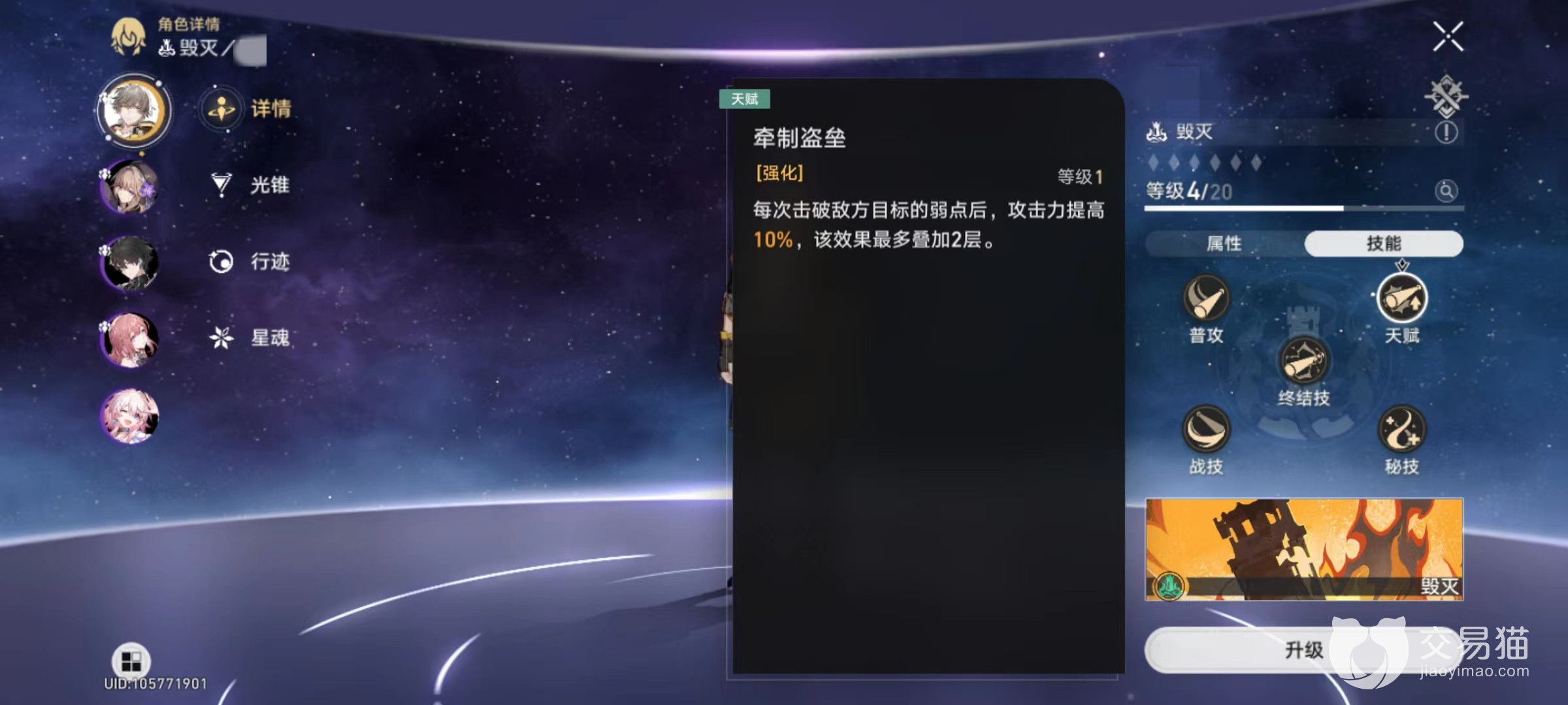 其实对于主角来说,天赋依然是比较关键的方面,叠加起来之前确实较为弱势,但是如果达到满层绝对不算太弱。而在星魂提升方面,达到六命之后,每次消灭敌方单位可以直接触发天赋。这样就相当于即使不击破弱点也能获得攻击力上面的提升,能快速叠加起来,相当于达到最佳输出状态更快了一步。
