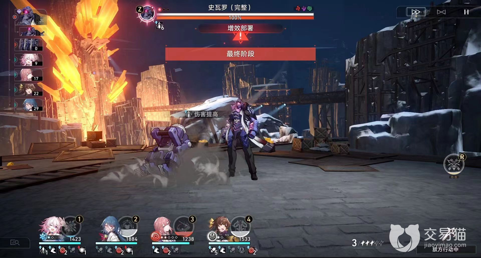 除了主线遇到的史瓦罗boss外,在模拟宇宙中玩家也会再次遇到,而且强度极高,目前是第四宇宙首领关卡出现,最让玩家头疼的就是4技能增效部署,机械手臂不仅可以造成高额伤害,还可以强控我方角色,就和抓娃娃机一样,一抓一个准,如果主C被控就无法行动,只能打破机械手的弱点后才能脱困,因此大家得记住战斗中攻击的优先级别。
