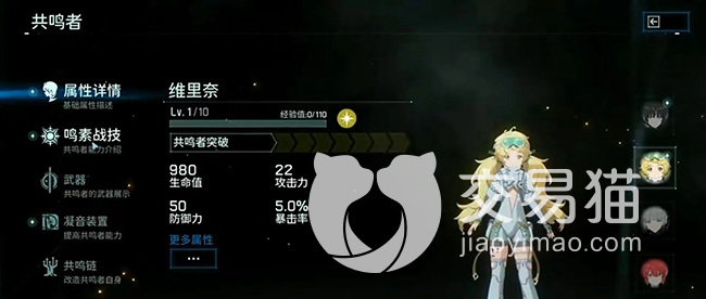 维里奈。这一角色优势在于多段攻击,打出六段伤害,释放光鸣效果,带来光合能量,打出多段叠加伤害,伤害叠加上限为四层。此外,角色打出重击之后,一键提升队友的血量,释放出范围攻击。