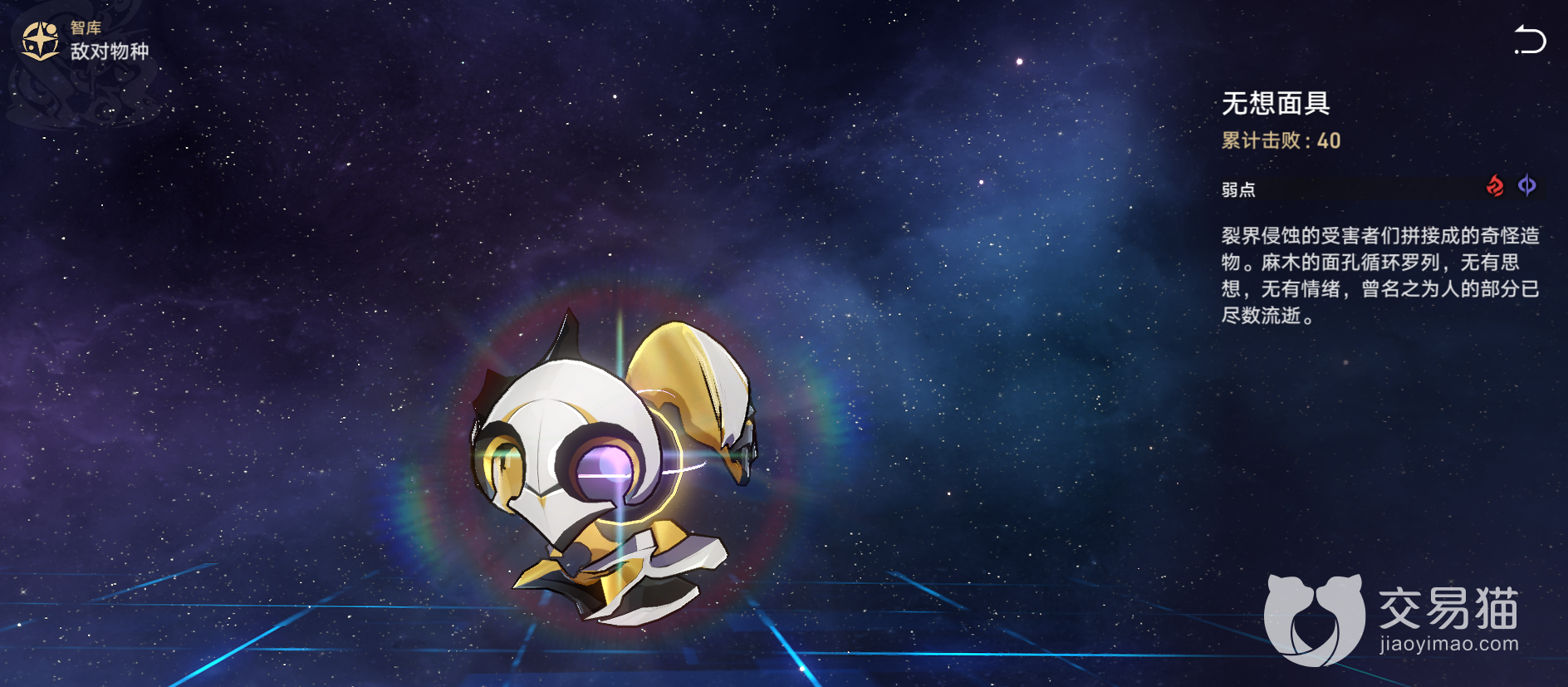 因为它回复能量这一特性,可以算是对玩家最有利的敌对单位,也可以把它当做充电宝,因此在模拟宇宙中遇到这类怪,算是比较好运,释放终结技击杀无想面具后,恢复能量加快下一次技能释放。