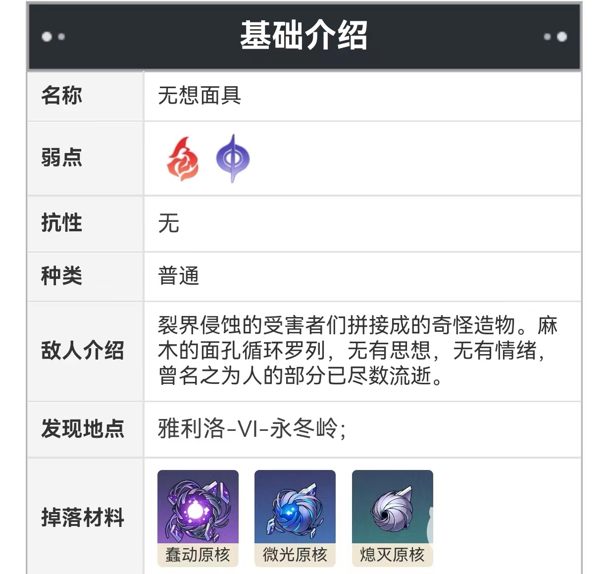 以上就是本次崩坏星穹铁道无想面具弱点有哪些的全部内容了,相信大家对无想面具也有了了解,至少遇到这类野怪后大家根本不用担心,强度不高还是充电宝。