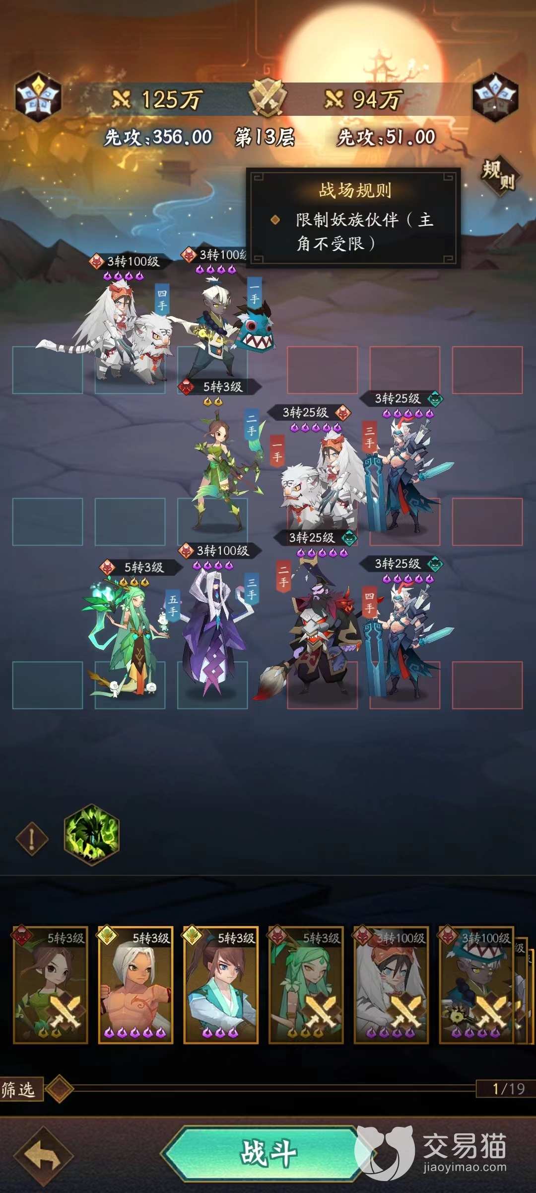 弥生道的副本主打的就是使用妖族的伙伴进行对战,除了主角之外,必须要使用四个妖族阵营的,虽然目前版本的妖族不算强势,但是还是有一个比较厉害的奶妈,也就是女娲,同时东皇太一这个主C伤害也是非常不俗的,以这两个为核心的话,能够很容易的攻陷前几层的对手,剩下的两个位置可以选择白虎以及朱雀,这样能够补足一些输出,整体来说还是挺容易通关的。