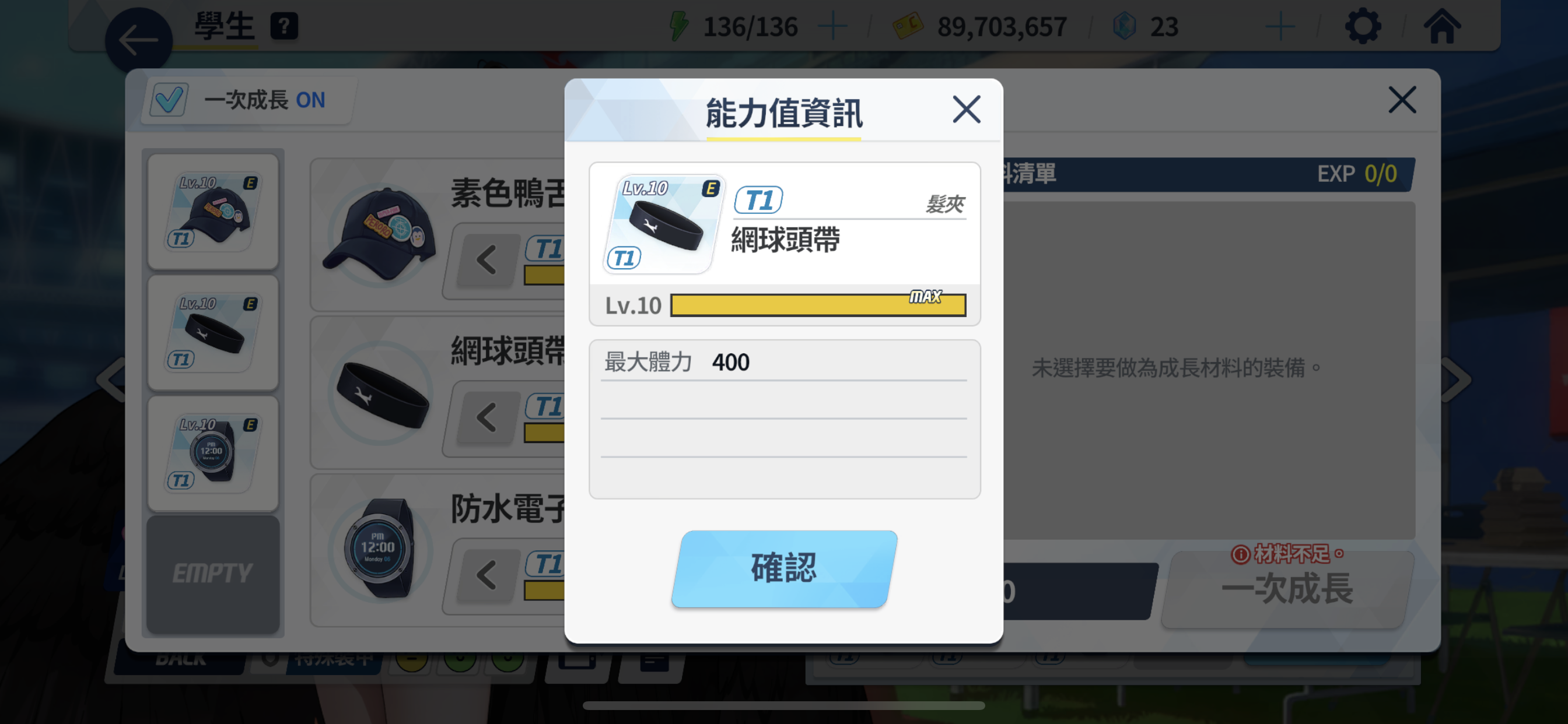 T7等级的帽子,为学生提供的是40%攻击力以及1800暴击伤害,而同样等级的手套带来的则是35%攻击力、350暴击值与200命中值的提升,鞋子在T7阶段,则能够为学生带来30%攻击力加成,以及13.5%最大体力的增加。