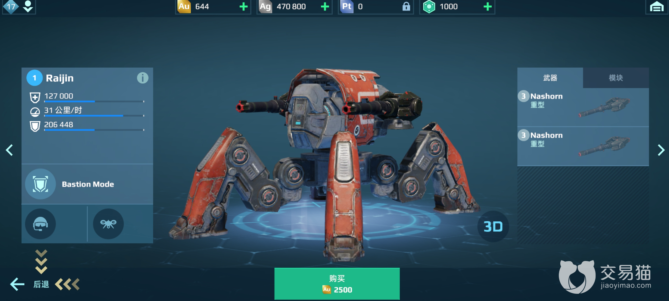 使用机枪的话雷神的输出能力将会非常夸张,面对面站撸极少有机甲能在它身上占到便宜,技师要选择贪路和强悍护卫来增强移动能力,这样雷神的移动方面的弱势会稍微小一点。