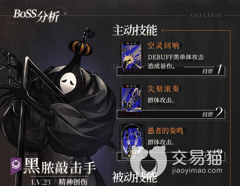 知己知己才能百战不殆,下面小编先为大家来分析一下boss。黑脓敲击手的主要攻击方式是群体攻击,造成精神上的伤害,其中空灵回响这个技能,会给玩家的角色增加易伤的状态,抵挡这个攻击的角色,最好是玩家的坦克角色。
