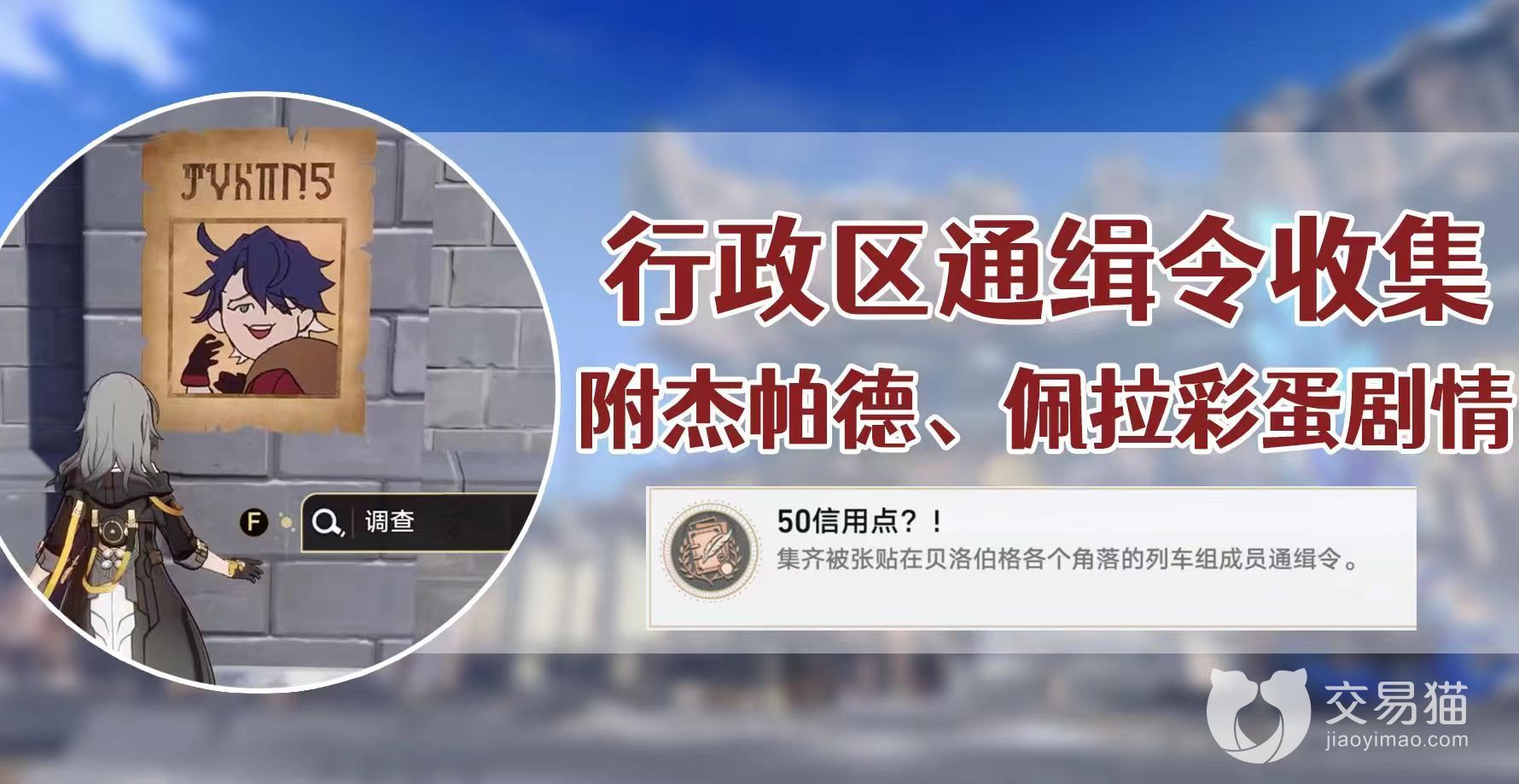 所有通缉令的位置并不难找,小编已经把位置全部圈出来了,大家按照图中标的在行政街找到即可,角色靠近之后与通缉令交互后就能拿到手了,最后一张到手时就会自动完成成就“50信用点”,还能白嫖5星穹。