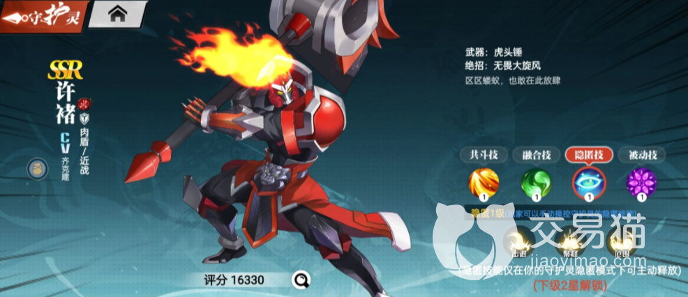 出站位除了石灵明以外还有许褚,许褚这个角色在游戏当中为火属性,对金属性的敌人有天生的克制作用。他的技能天生拥有高额的伤害能力,并且还附带霸体的效果。玩家如果使用得当,没准还能够得到意想不到的效果。