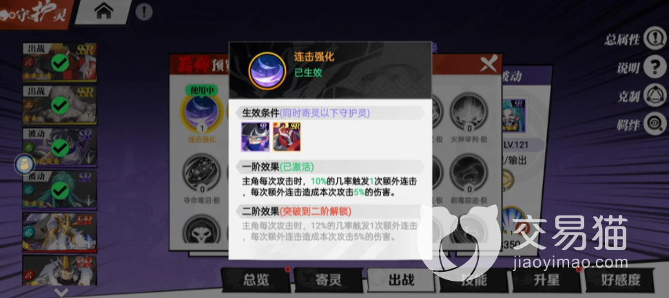 许褚和于禁在游戏当中一旦触发同时寄灵,不仅能够帮助玩家进行连击强化,还有概率触发连击的概率,增加攻击的伤害。而石灵明和燕青同时寄灵,则能够帮助能量成倍上涨,大概率提升角色防御力,还能够增加连击效果触发的不同元素伤害。