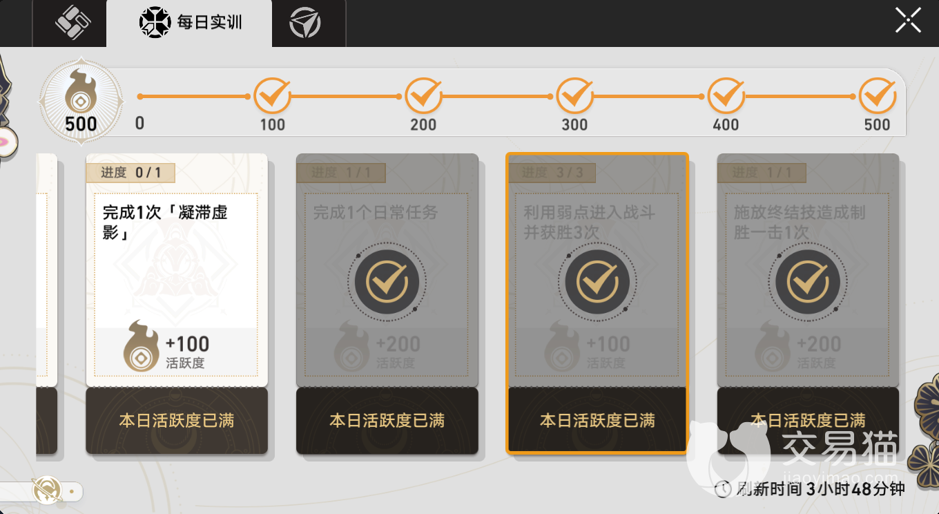 当玩家做完任务、肝完地图后,还能拿到的资源就非常有限,大部分长草期玩家只能靠每日任务活跃500给的60星穹攒资源,如果你不氪金每天登游戏必做的两件事就是:打满每日活跃度、刷完体力。