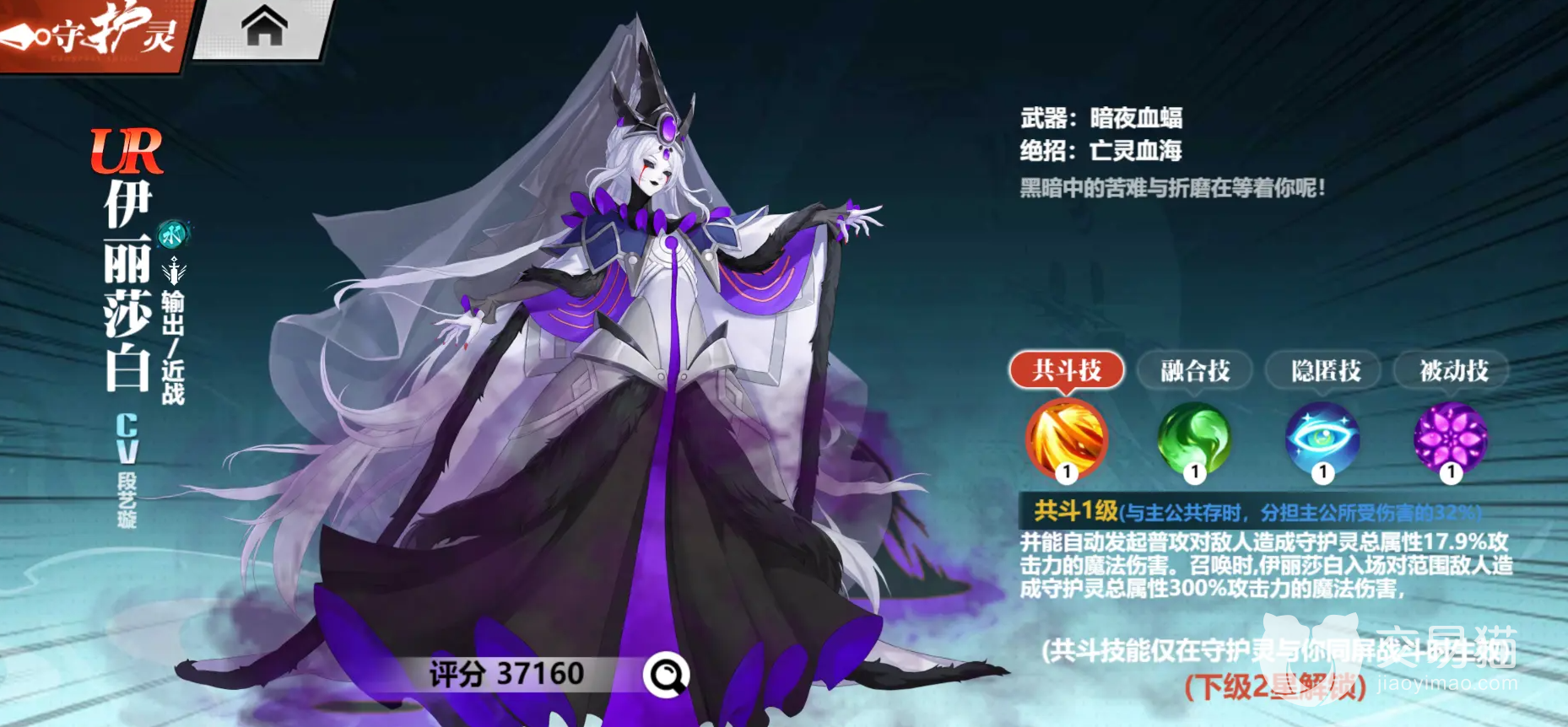 在原著中这个第八骑士伯爵的守护灵在这款游戏中也是以女王的姿态霸气登场,登场时就能够对范围内的敌人造成大量的魔法伤害,同时能够分担大量的伤害,提高主角的生存能力,三个隐匿技也能够给破解敌人的霸体攻击,同时还可以给敌人造成海量的魔法伤害,虽然缺少一定的控制能力,但是其cd短,伤害高是其霸占ur守护灵输出榜单的关键原因。