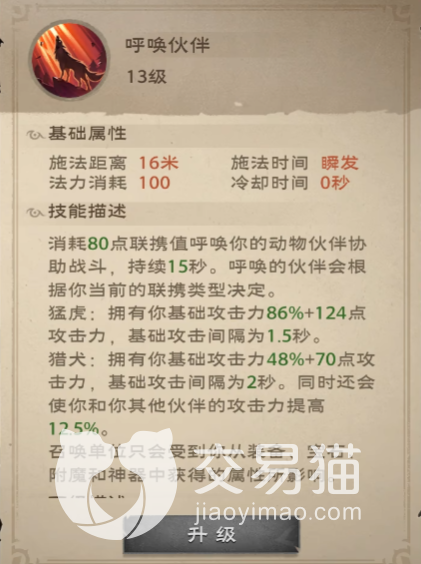 这个状态下的能力还会有爆发伤害,在攻击的时候会有更高的输出能力,同时其技能还可以蓄力释放,这样可以有效的提升它的技能伤害。同时它还会有另一个输出方式,主要就是通过召唤宠物来攻击。