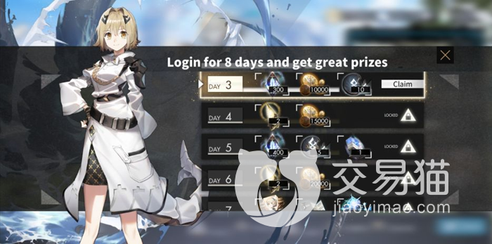 第三日,第一行为累计登录游戏3天,赠送光灵礼物,开放巨象咖啡。第二行为将巨象舰桥等级提升到2级并于终端对话达到3次及以上,领取10个巨象棱镜。第三行为成功突破主线剧情故事的第二章,成功完成15次任意游戏关卡,将游戏队伍等级提升到8级。