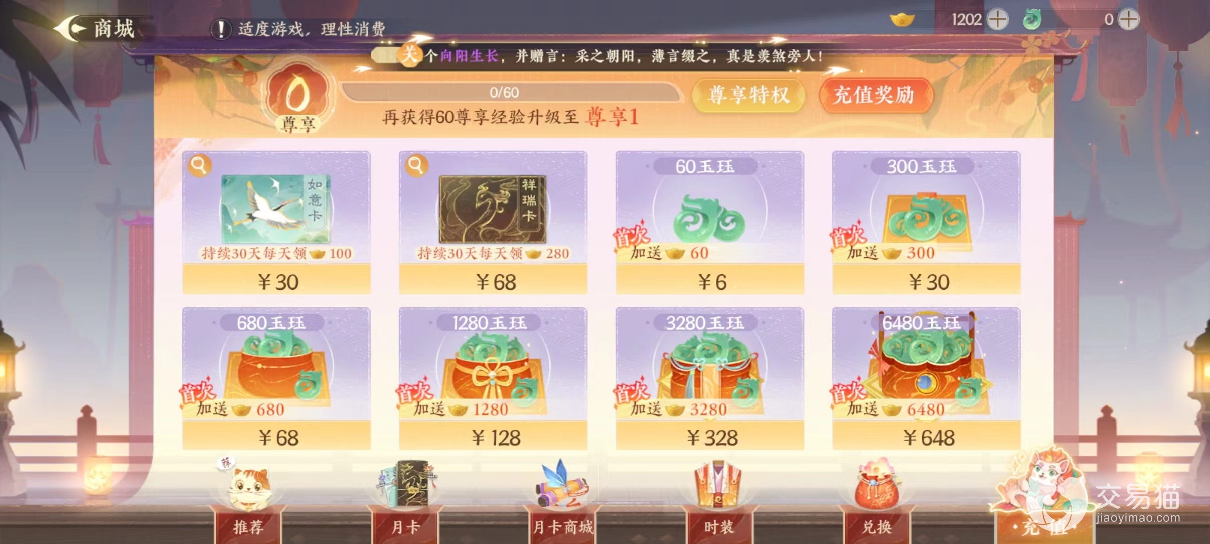 同时还可以购买玉如意,大宝剑,势力指挥令,部分时装也可以用玉珏来购买,在开服抽卡页面里,有一个特惠商店,里面的东西也可以用玉珏来购买。