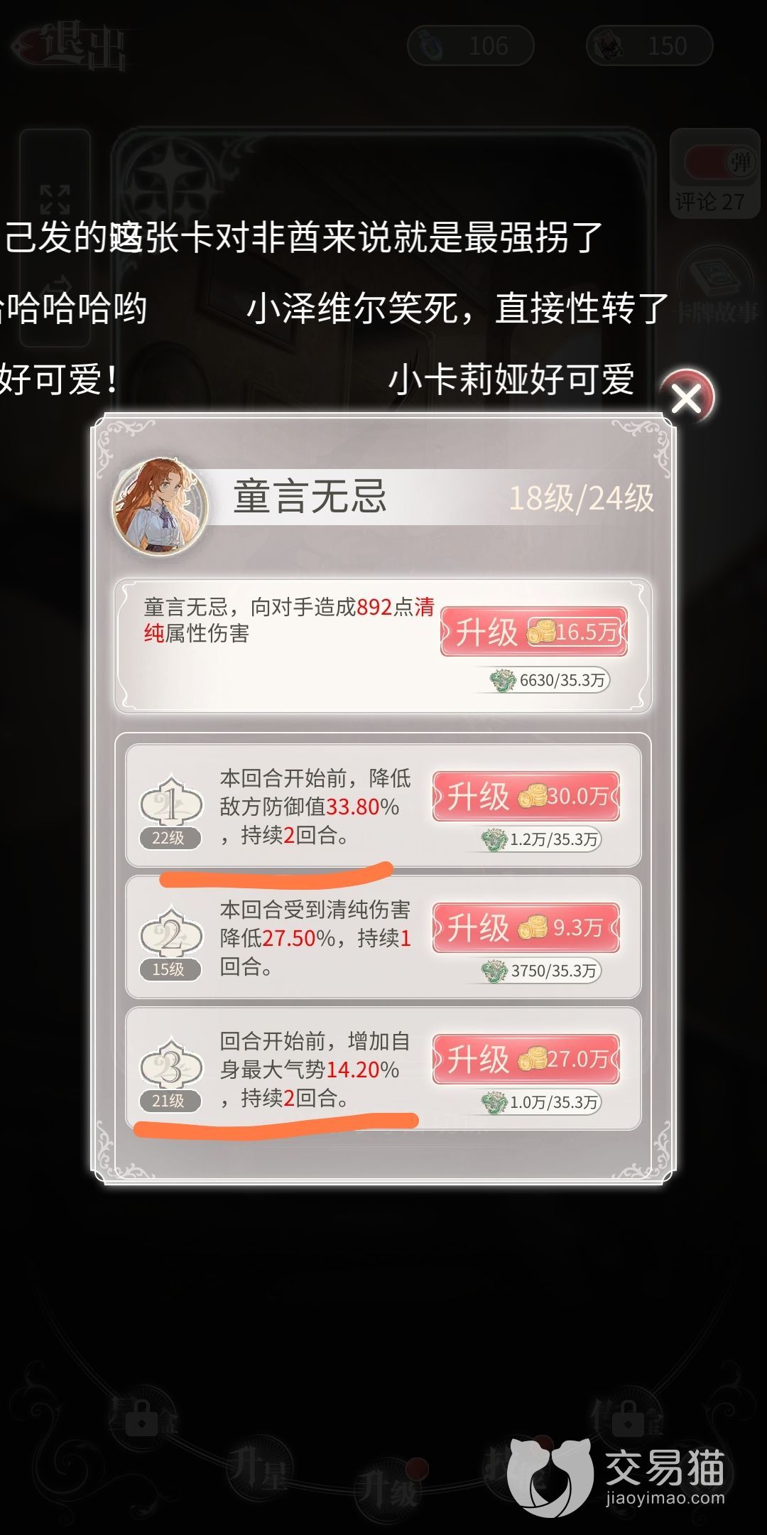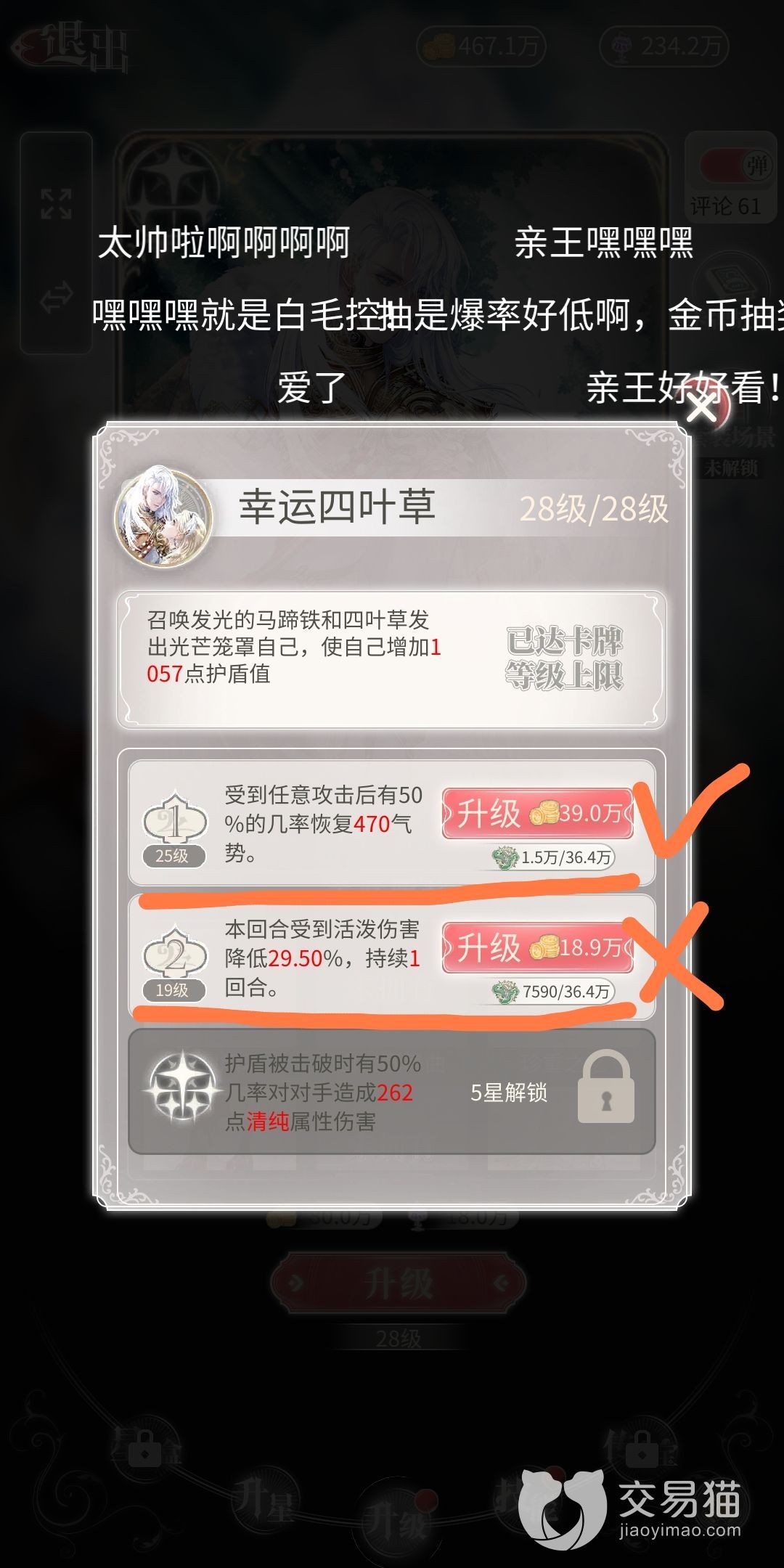 针对于卡牌培养的详细攻略,首先需要对卡牌进行升级。当卡牌本身的技能并不是特别优秀,或者是相关的服饰部件是比较复杂的话,那么先不考虑升级。只需要单单对一件服饰进行升级,并提高技能等级的上限。类似马背上的亲王这张卡牌主技能可以提升,但技能二是没必要的。